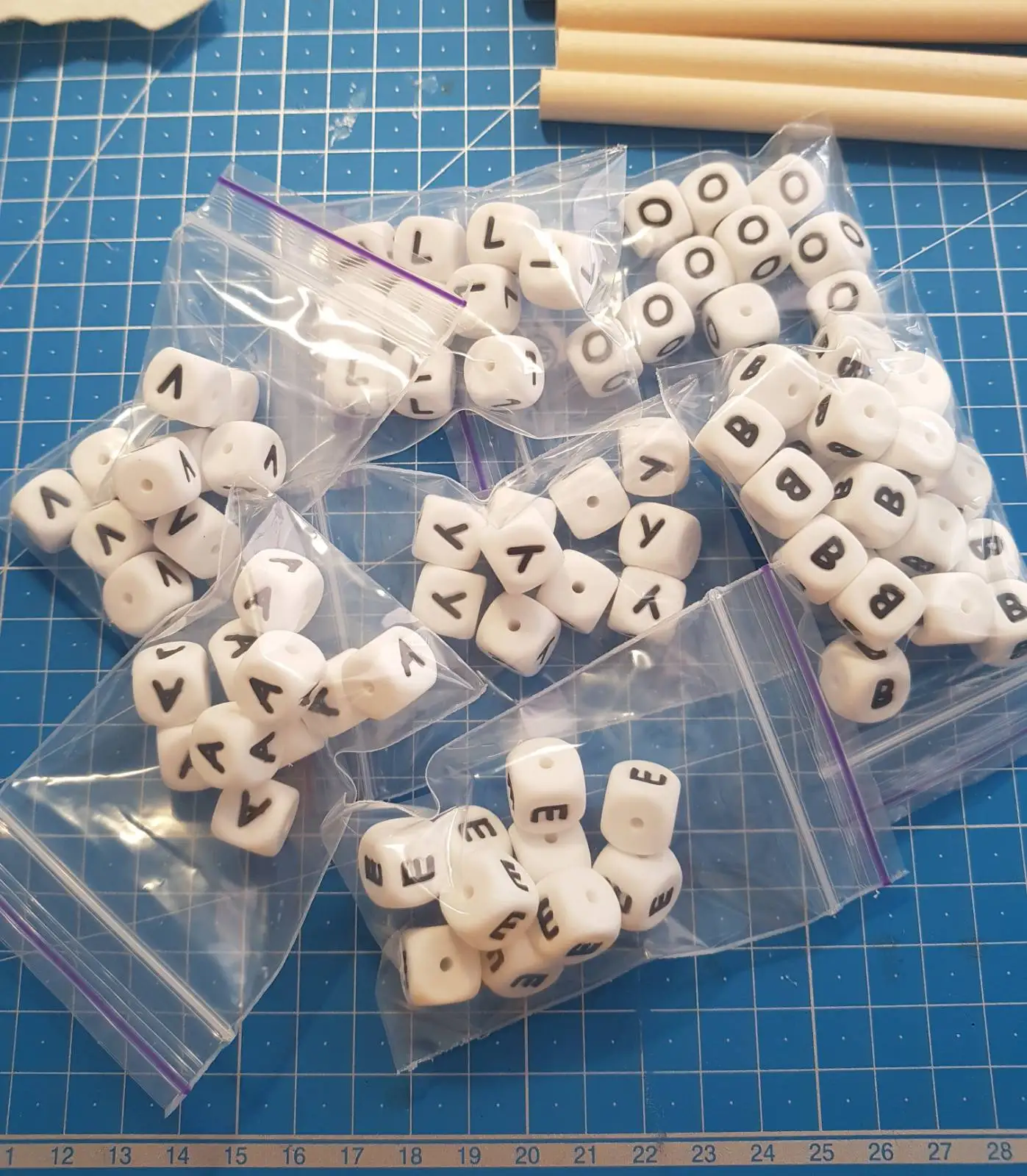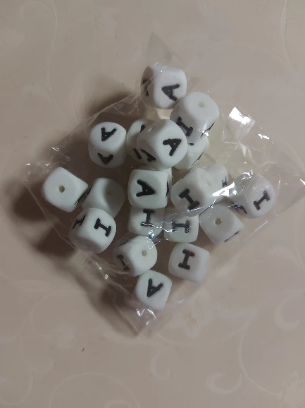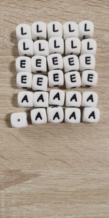 Содержание упаковки: 10 штук силиконовых бусин с буквами