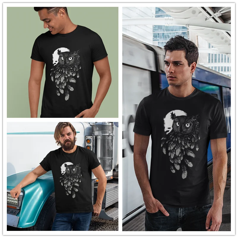 Футболка мужская с принтом совы, 100 хлопок, с коротким рукавом