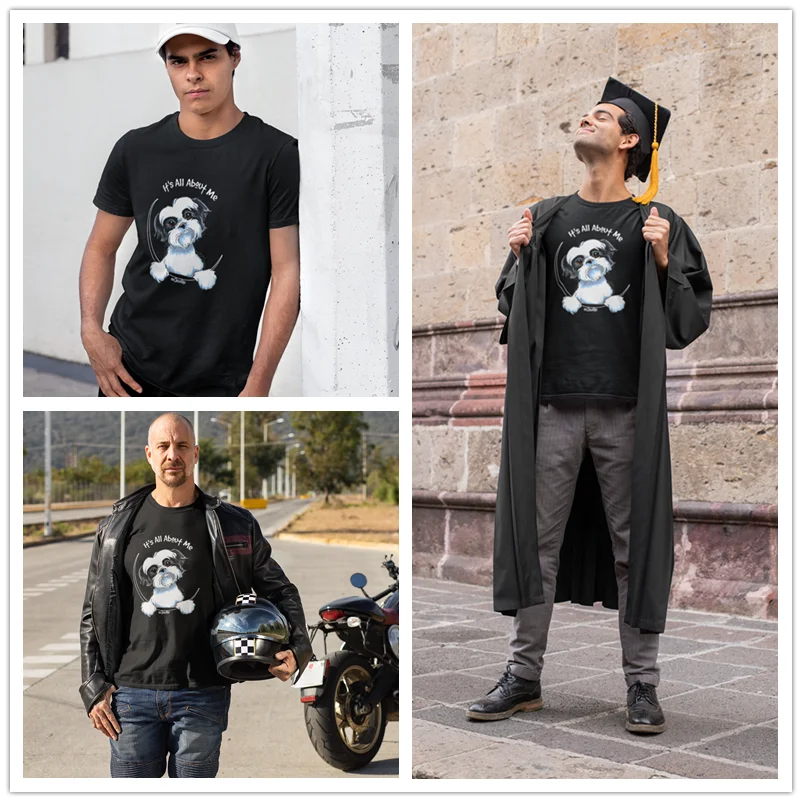 Футболка Shih Tzu, белая футболка Shih Tzu It S All About Me, 100 хлопок, футболка с принтом, модная мужская футболка с коротким рукавом