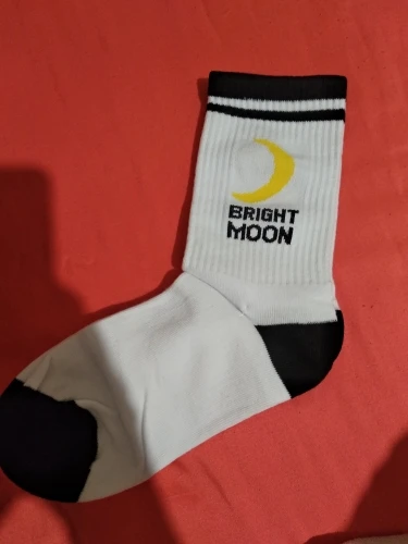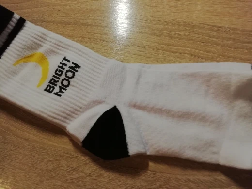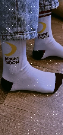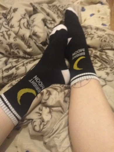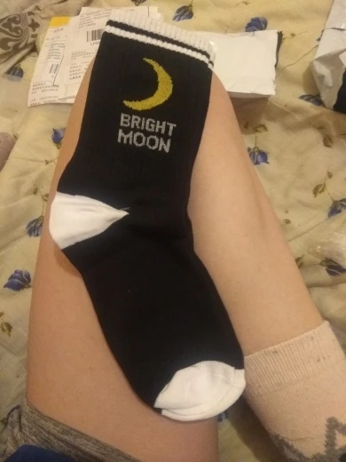 Носочки классные ,довольно длинные , на 37 размер чуть большиe,не очень нрав то что торчат нитки, но кому как))) и на правом носке надпись «Bright moon» уходит чуть в сторону а на другом носке все норм как и надо по середине, доставка довольно быстрая