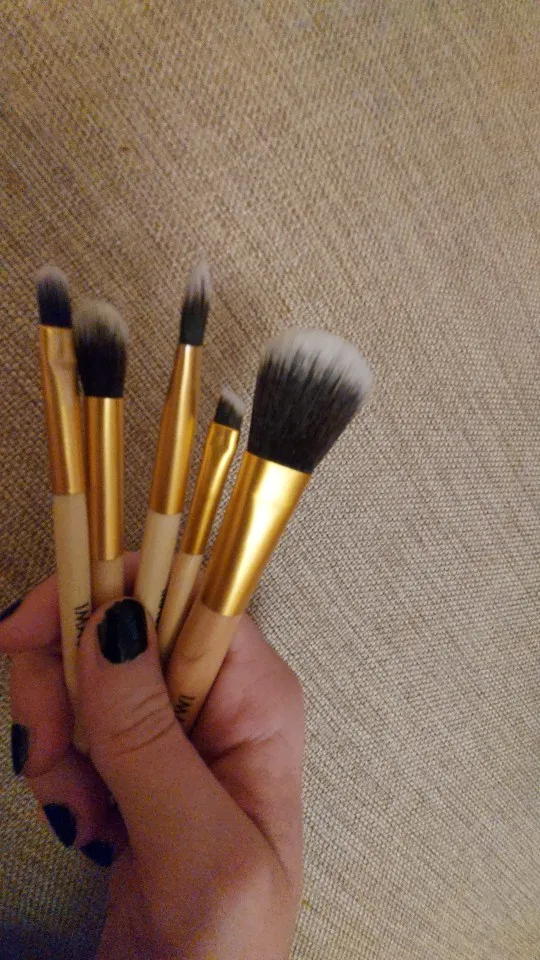 яркие, хорошая пигментация, кисти в основном плоского сечения, только 1круглая. на фото не она. это самая большая из набора. синтетика. приятные. выкрасы пальцем делала. 1 раз в тени 1 раз на руку упаковано гипер качественно