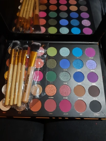 Палетка пришла очень быстро. Очень хорошая качество хорошо запакована ничего не разбилась. Очень яркие тени яркие цвета, Тоже самое что на картинке Я очень довольна покупкой тени очень яркие на камере не так видно. Продавец класс