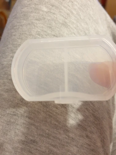 Пришло очень быстро. Маленький контейнер с двумя отделениями, в кармане мешать не будет.