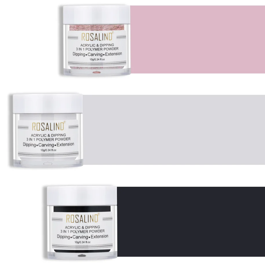Акриловая пудра для наращивания ногтей ROSALIND 3 в 1, кристаллическая пудра для наращивания ногтей, декоративная пудра для маникюра