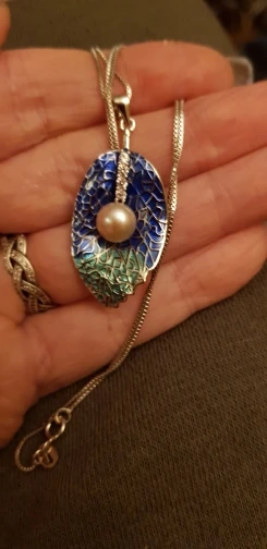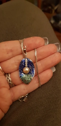 Это очень сдержанный кулон, и он позволяет сочетать его с другими типами жемчуга. Очень мило. Это очень похоже на фото