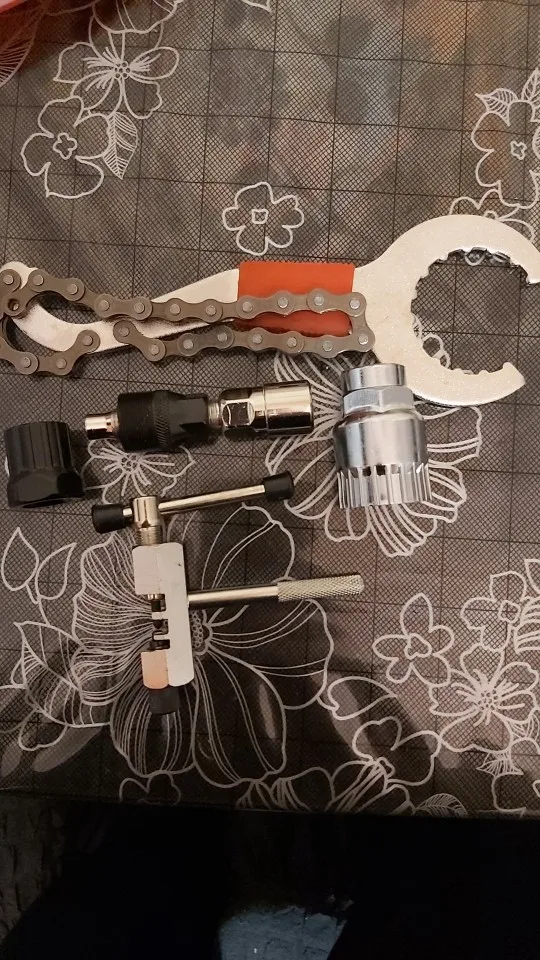 инструмент для цепи просто мусор. ручка не фиксируется, сделан из жидкого металла, цепь на него нормально не садится, направляющие согнулись при первой попытке. не рекомендую. ключ для снятия кассеты тоже низкого качества, очень сильно люфтит в посадочном месте