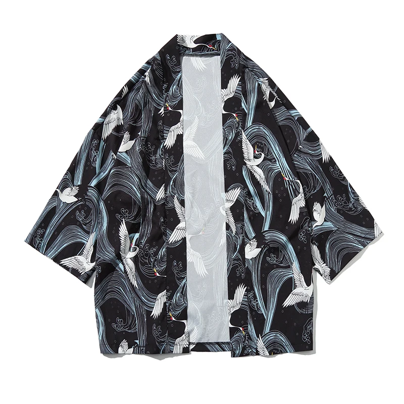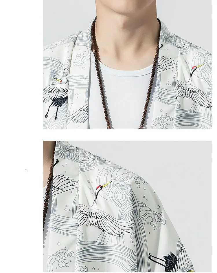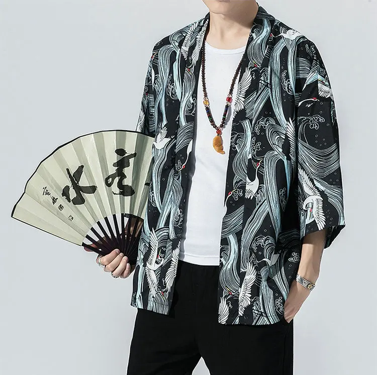 2019 оригинальные мужские кимоно в японском стиле, кардиган, рубашка, пальто, традиционная свободная модная повседневная тонкая куртка с принтом, летняя верхняя одежда