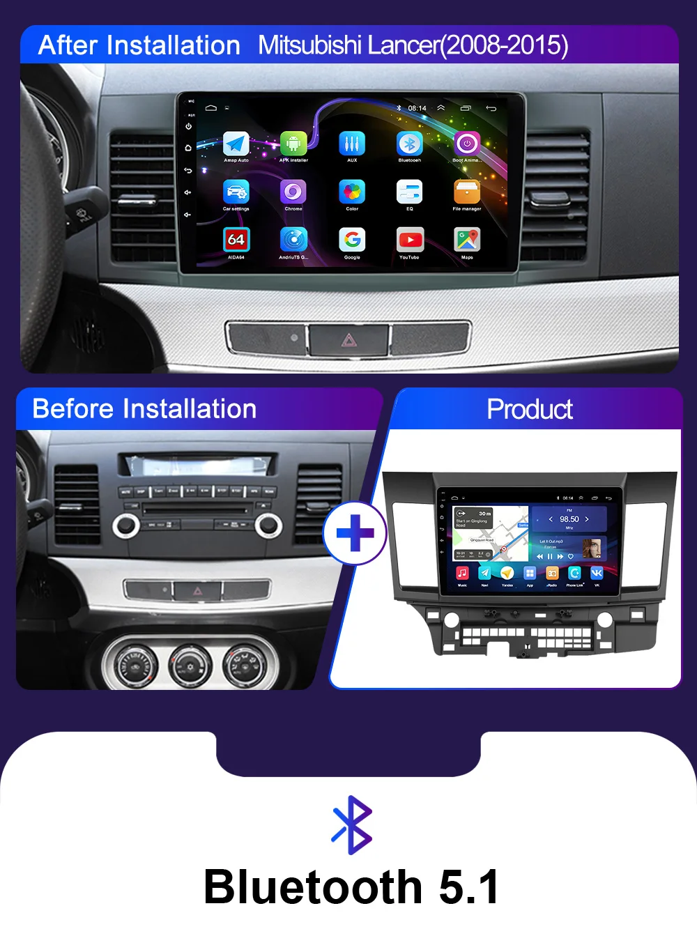 Автомагнитола LEHX Pro для MITSUBISHI LANCER 2007-2012, мультимедийный проигрыватель 2 Din на Android 10 с голосовым управлением, 4G + WIFI, радио, GPS, Carplay
