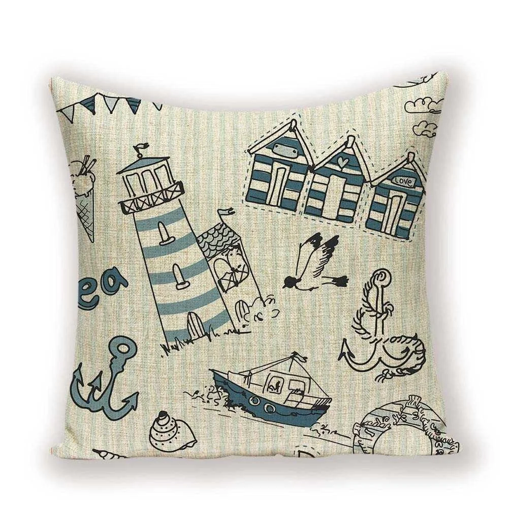Декоративные подушки в морском стиле, домашний декор, льняная Навол...