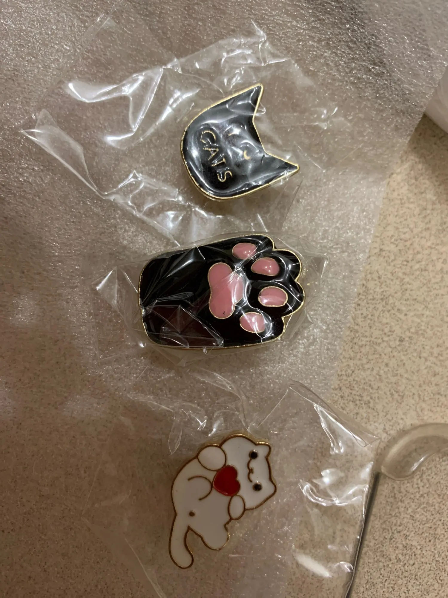 Посылка пришла довольно быстро. Целая и невредимая. Кначок очень красивый и блестящий. Советую продавца, если вы хотите значки с котиками