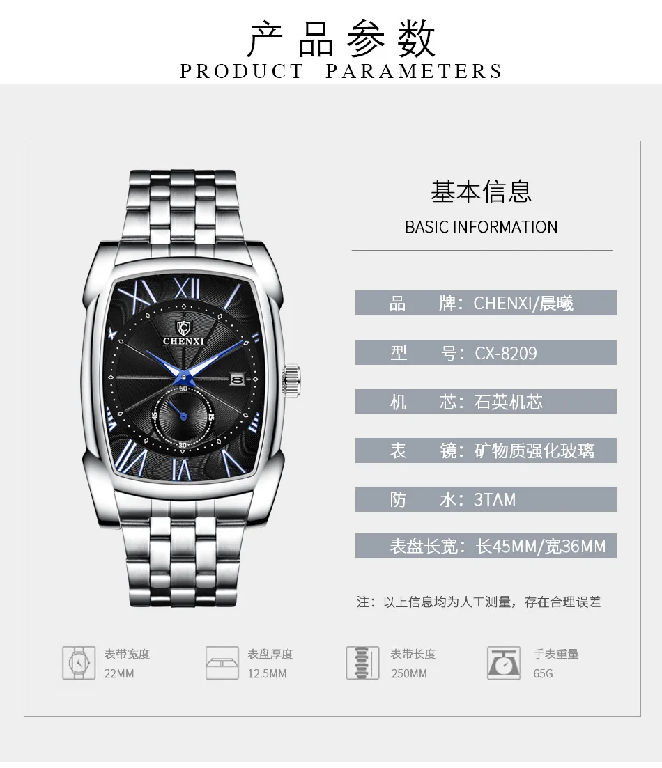 Часы наручные Chenxi Мужские кварцевые, модные роскошные повседневные приталенные, полностью стальные водонепроницаемые спортивные