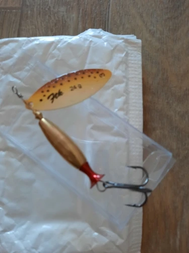 Заказ 12.12., на почте 30.12. Блёсна FTK заказываю не в первый раз, качество вполне устраивает. Эта блесна подходит для рыбалки на течении - тяжёлая с узким лепестком, крючки острые, толстые, но тройник для блесны такого размера немного маловат.