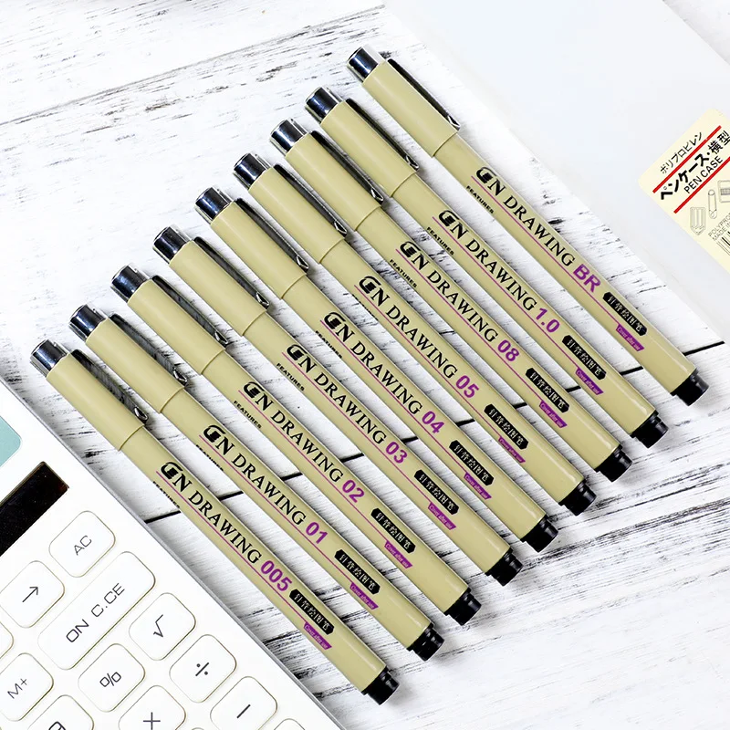1 шт., пигментный лайнер, маркеры для чернил 0,05, 0,1, 0,3, 0,4, 0,5, 0,6, 0,8 разных наконечников