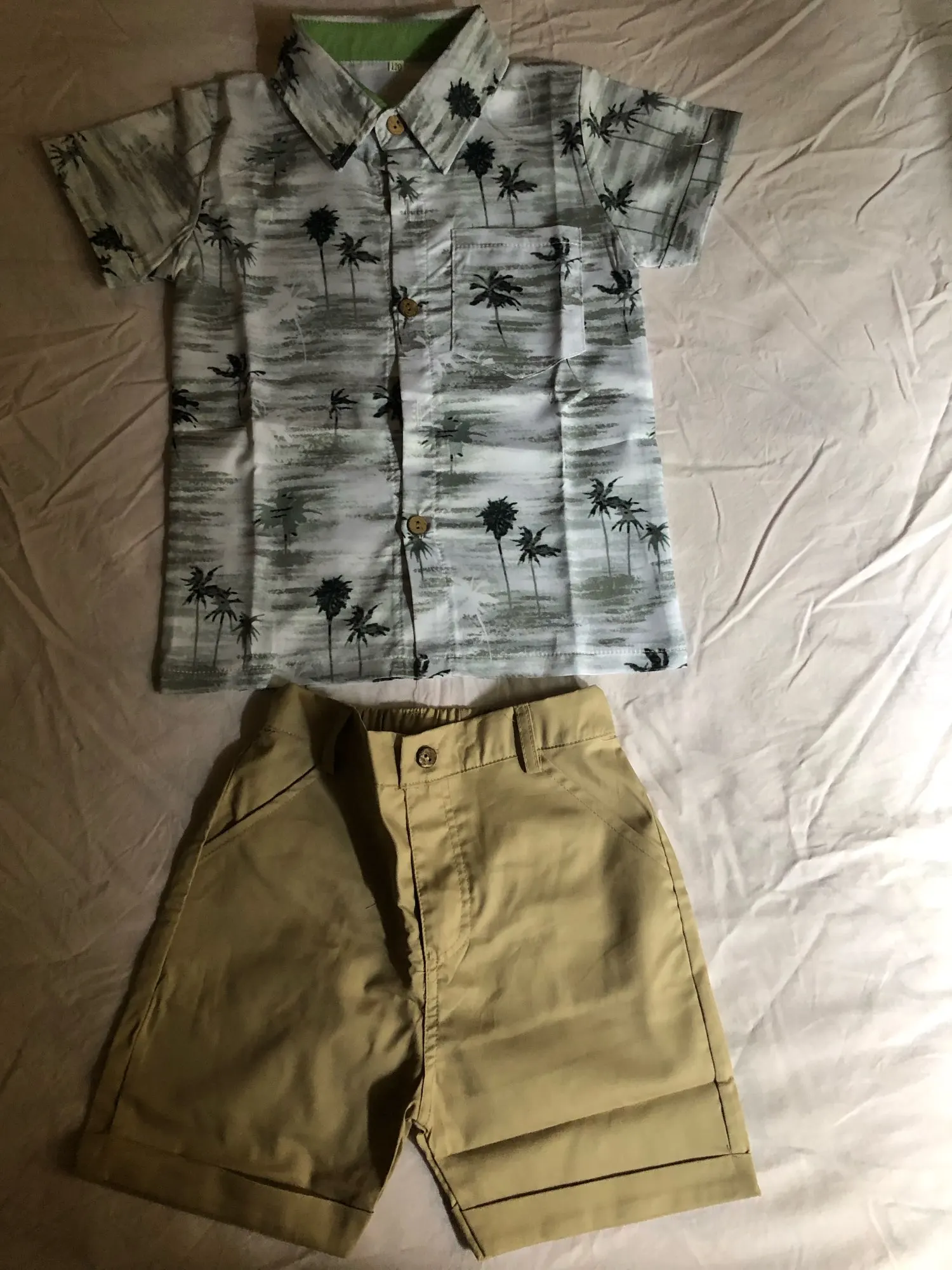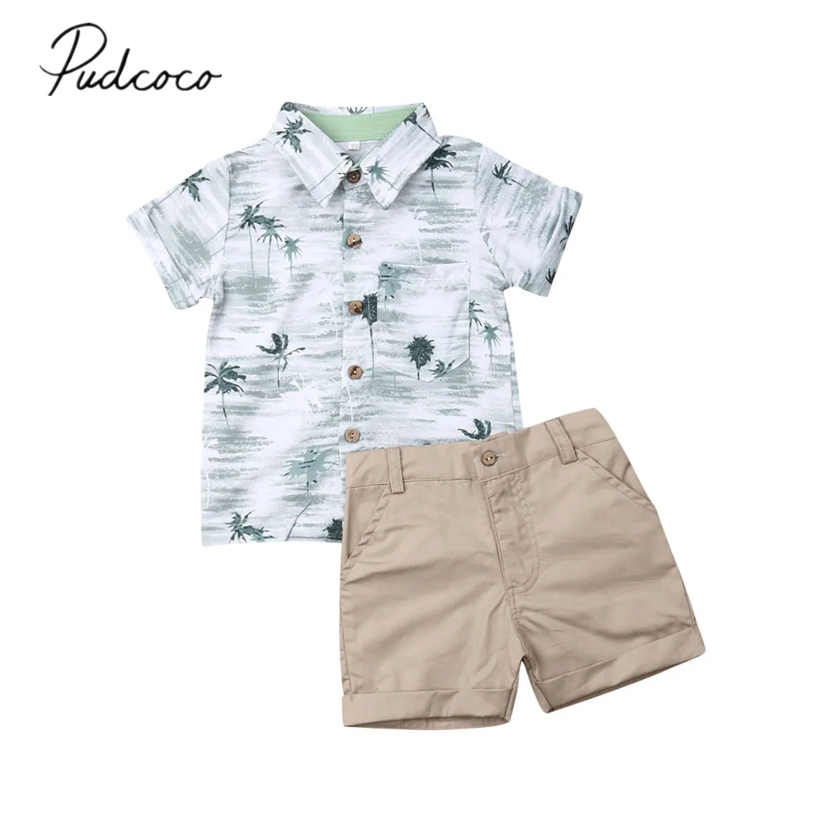 2019 летняя одежда для малышей, официальный костюм для маленьких мальчиков, платье с цветочным рисунком, рубашка + шорты, пляжная одежда, комплект из 2 предметов, одежда для детей