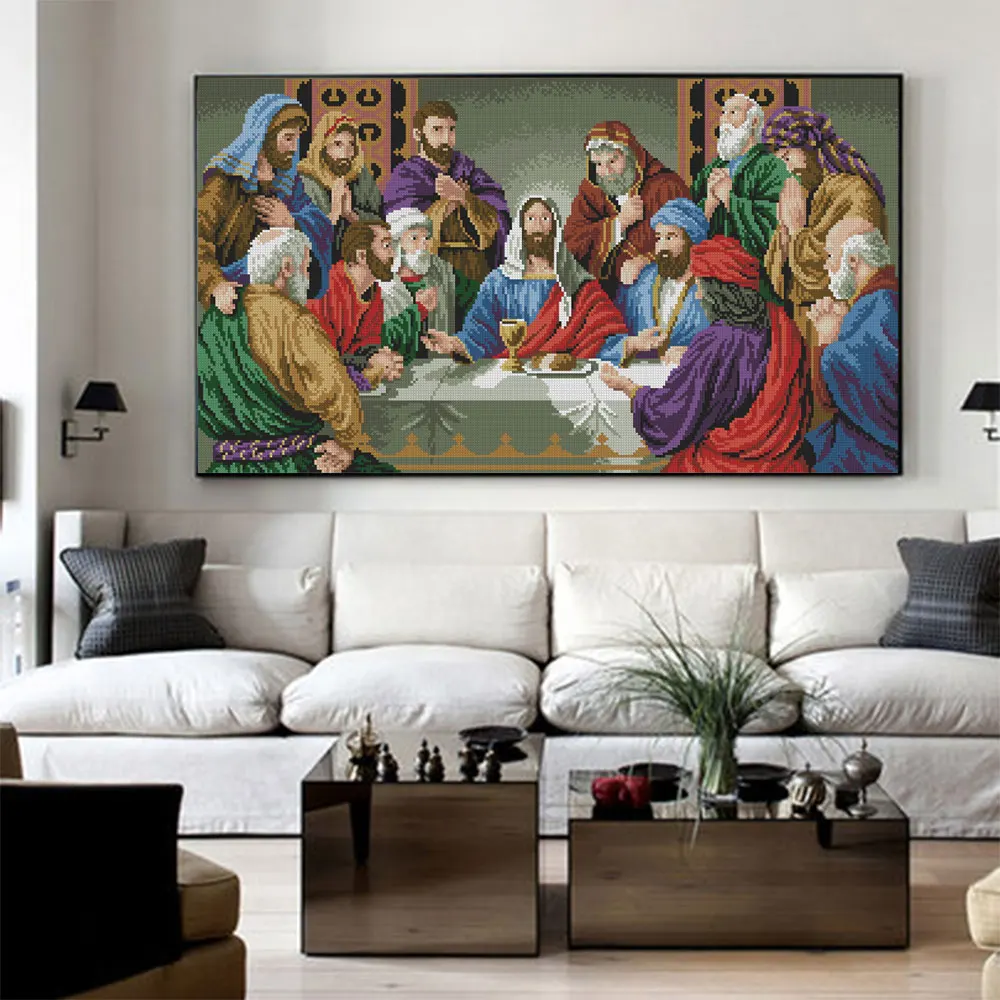 Алмазная картина с религиозными фигурами, круглая полноразмерная мозаичная вышивка сделай сам с изображением Иисуса и своих учеников