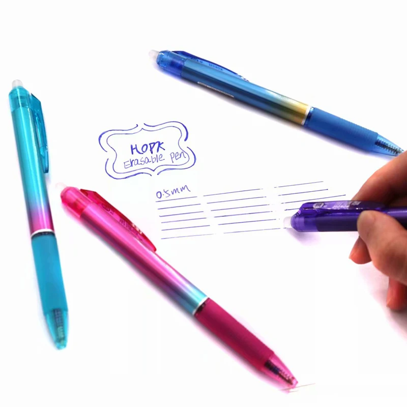 Стираемая ручка, 4 шт.компл., цвет радуги, пресс 0,5 мм, синяячерная стираемая ручка, стираемая ручка для школы, офиса, канцелярские принадлежности