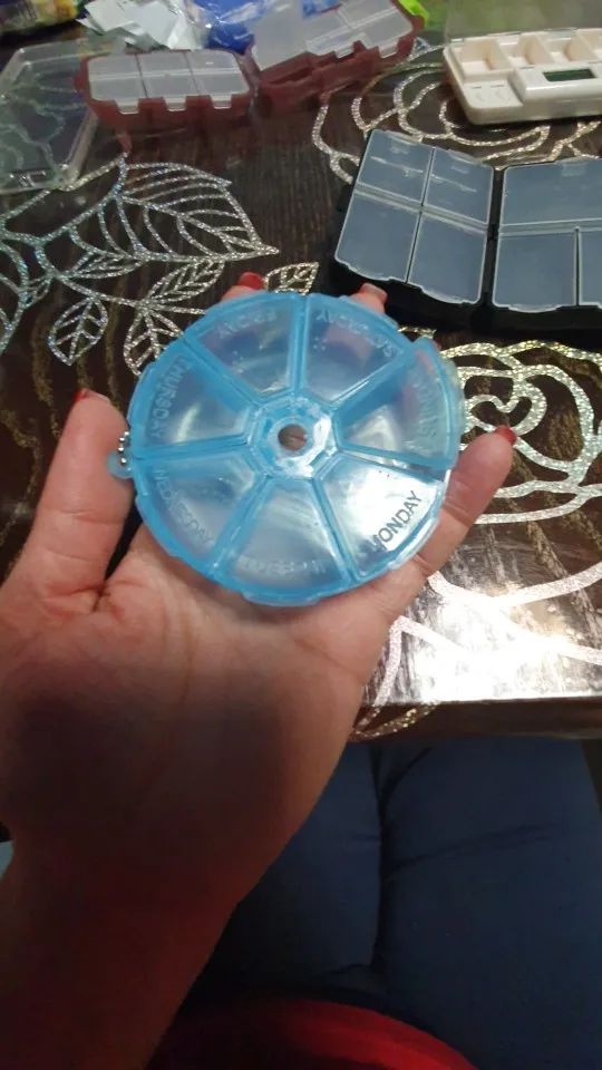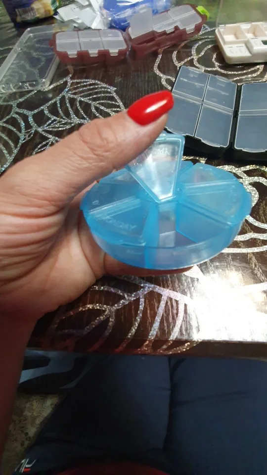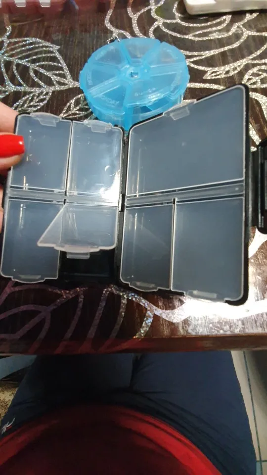 Отличная таблетница, лишь за исключением минус её, открывая секции чуть ногти себе не поломала, туговата пока, но как заполнила её теперь начну активно пользоваться, а так очень практичная и по всей сумке не надо искать, просто спасение!