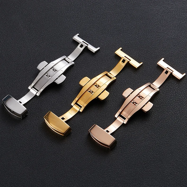 Кнопка для часов из нержавеющей стали, автоматическая складная пряжка с застежкой-бабочкой, размер 16 мм 18 мм 20 мм 22 мм 24 мм