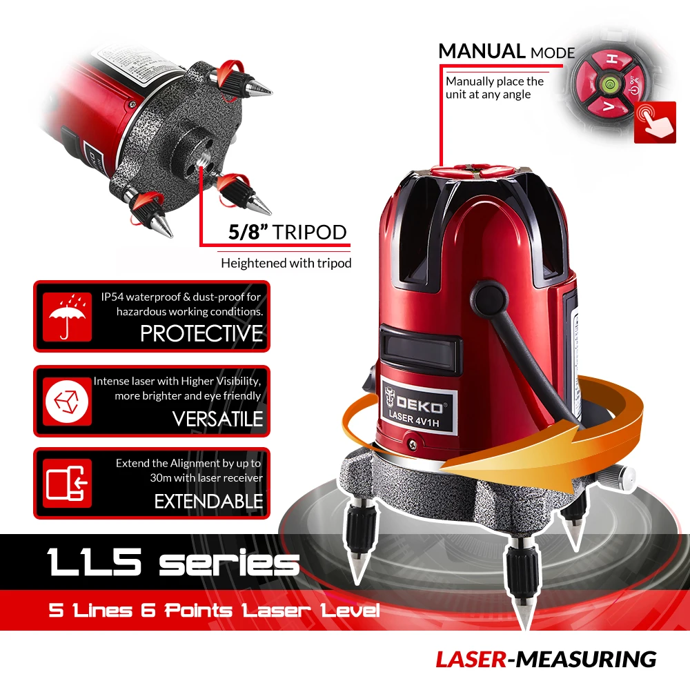Лазерный уровень DEKO LL5 серии 5, линия 6 точек, красный лазерный ...