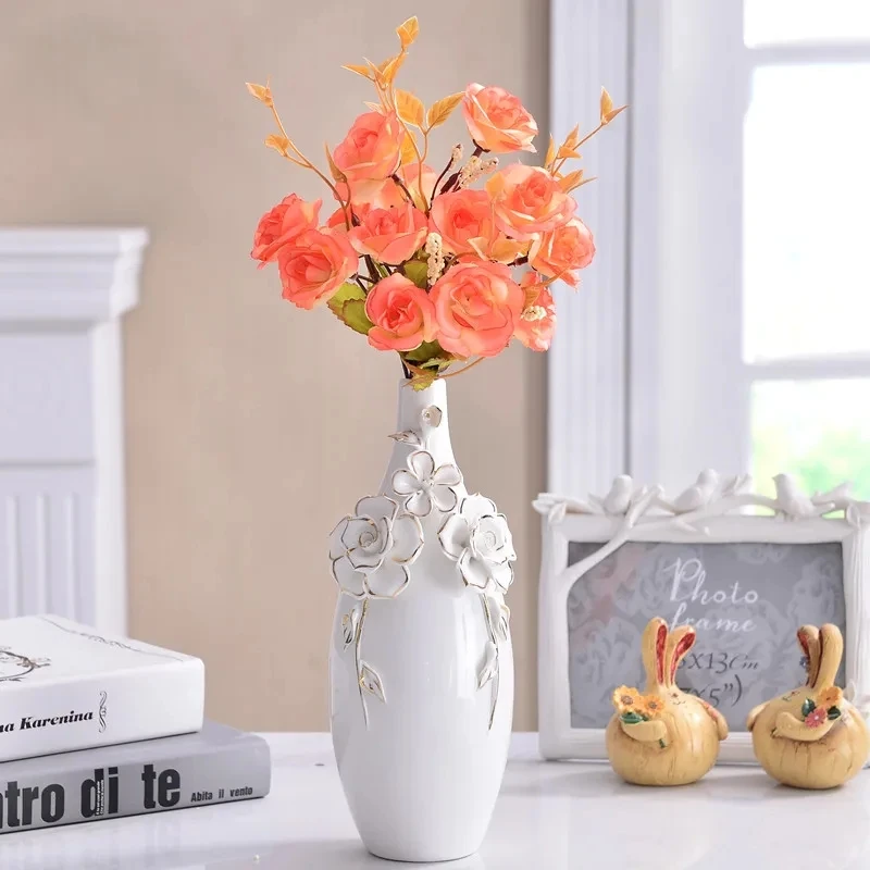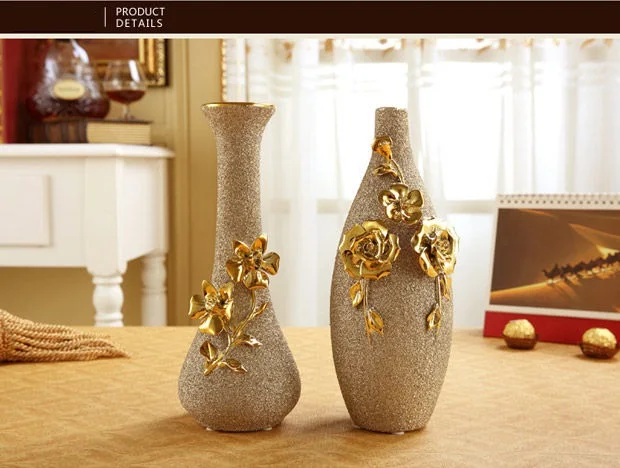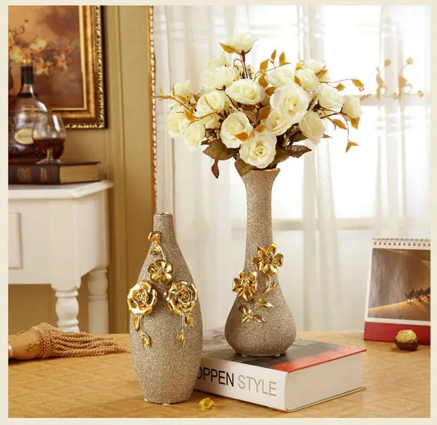 Европейская позолоченная матовая фарфоровая ваза, современная керамическая ваза для цветов, для комнаты, кабинета, прихожей, домашнего декора, свадьбы