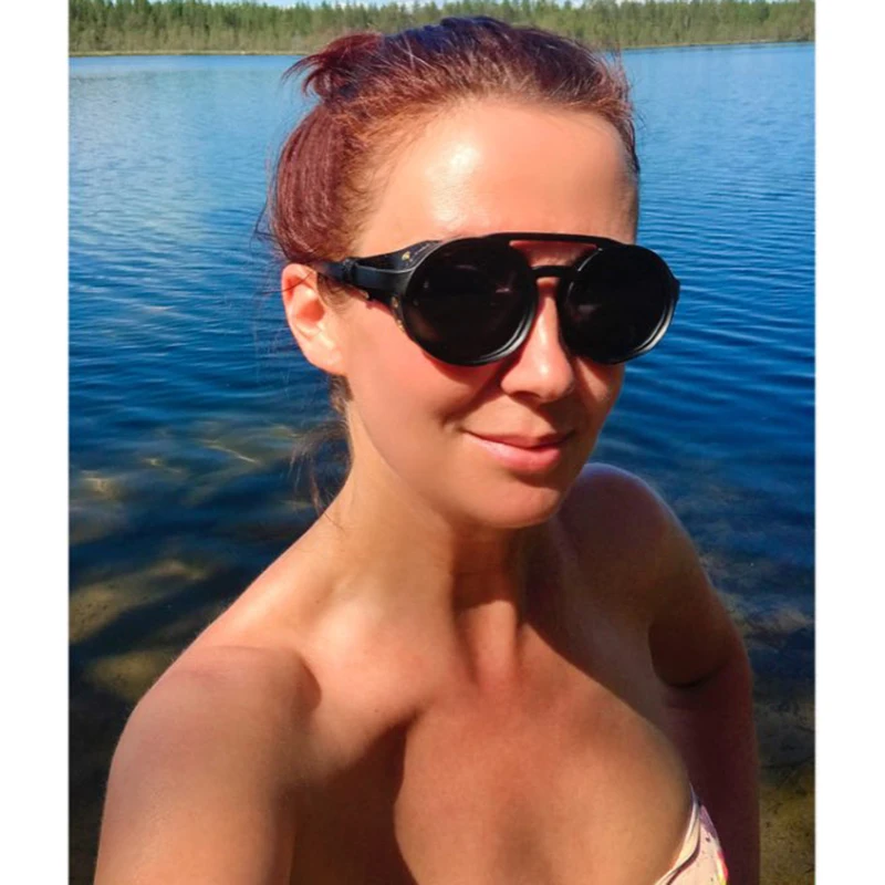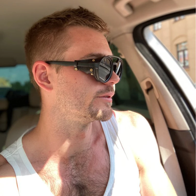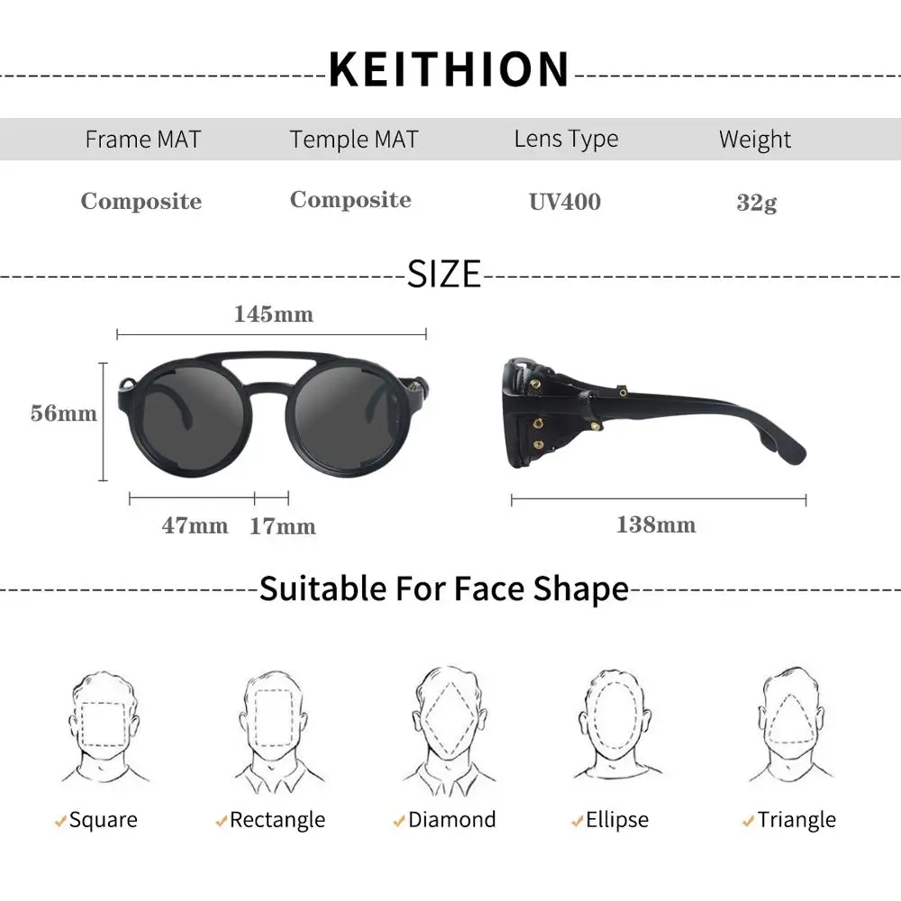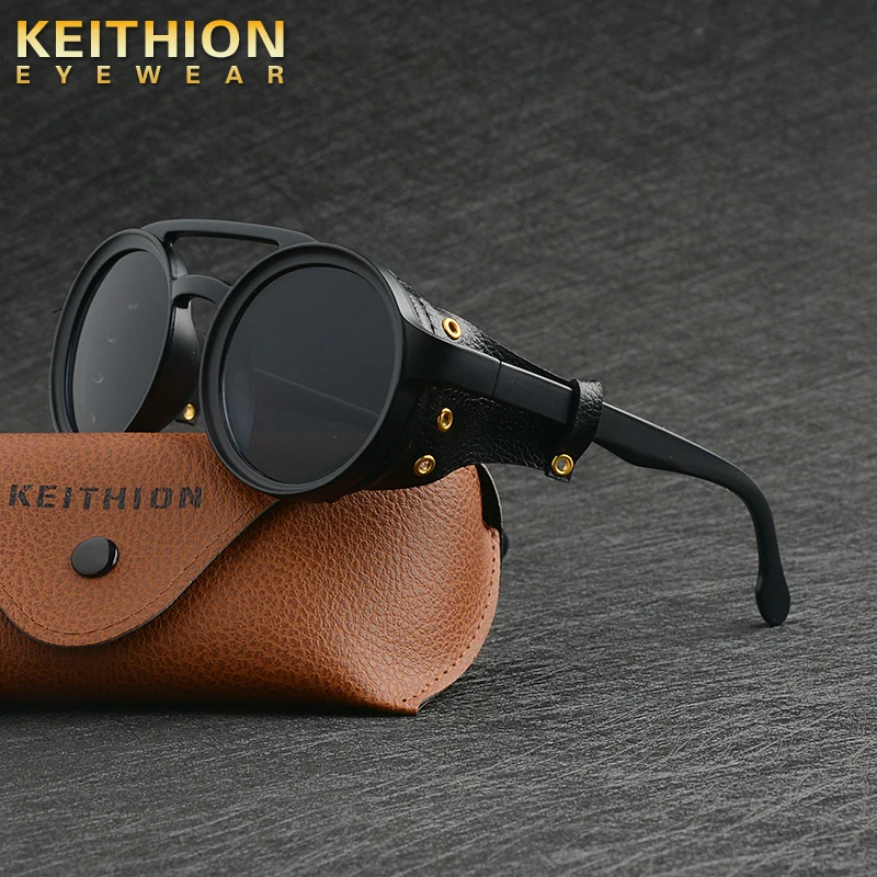 Солнцезащитные очки унисекс KEITHION, Круглые, в стиле стимпанк, из кожи, с боковыми щитками, UV400