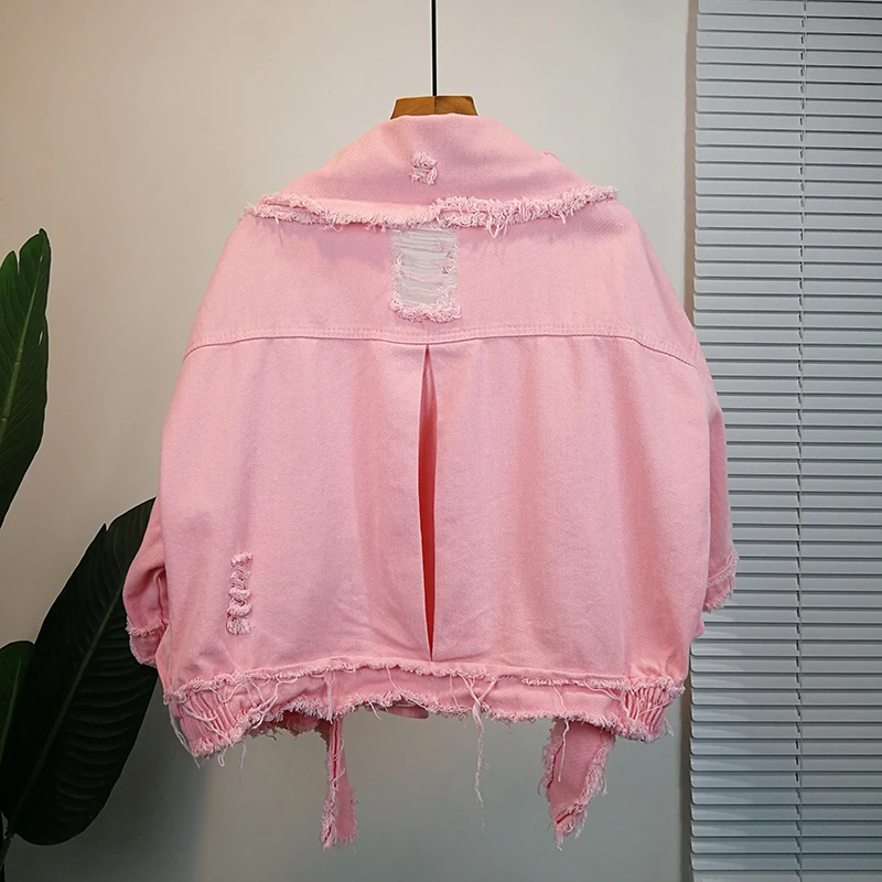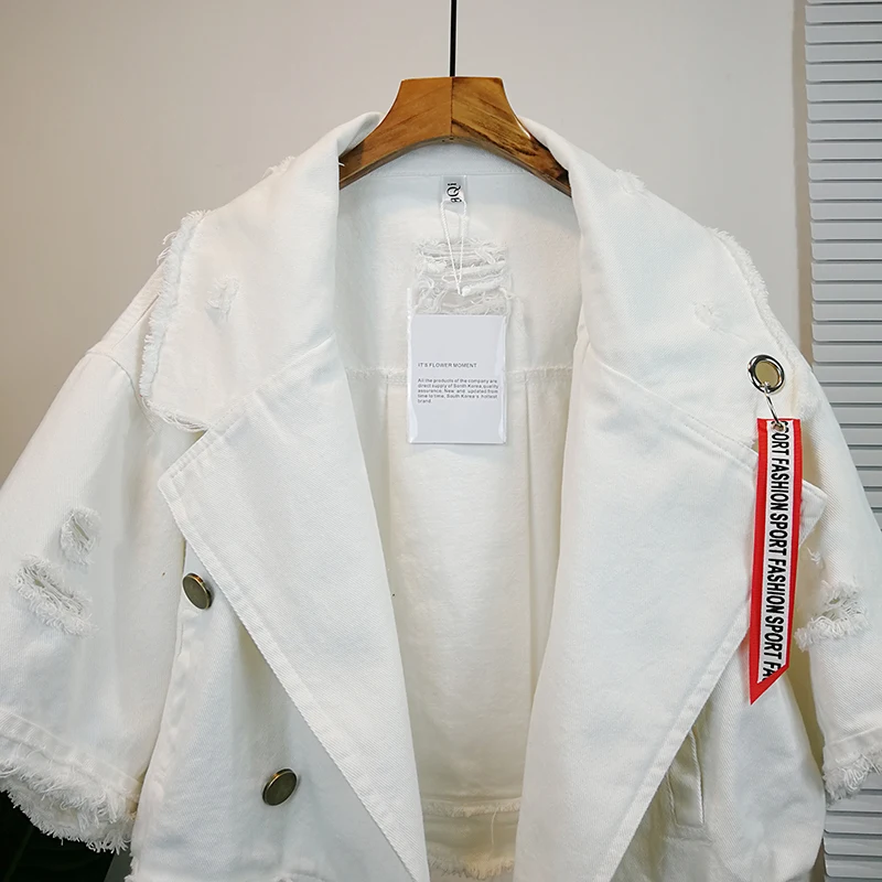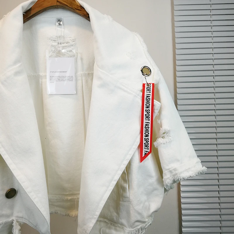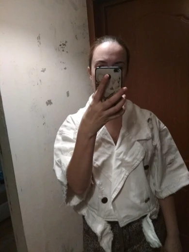 Куртка женская демисезонная короткая, рваная, с высокой талией