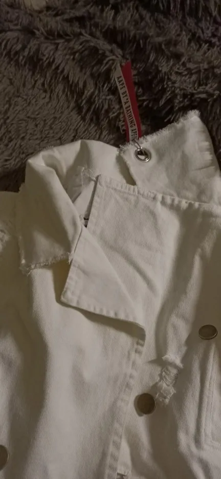 Куртка красивая, цвет очень яркий, ткань очень хорошая толстая джинса. Куртка не застегивается! И короткая. Быстрая доставка.