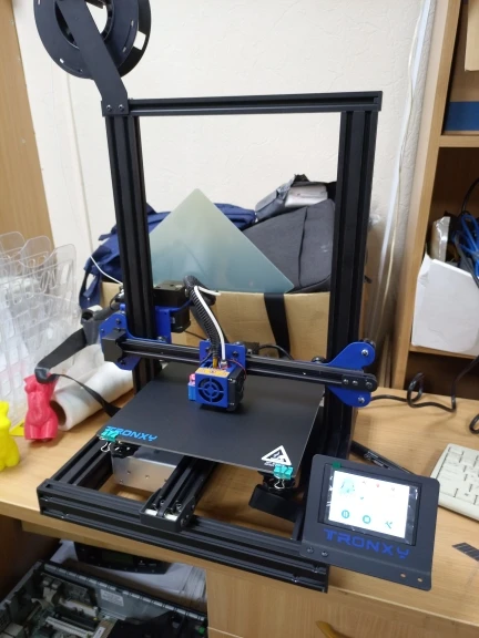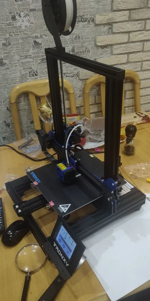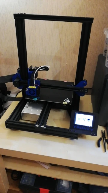 Собрал стойку без шайб, резьбы хватило. 1-й раз имею дело с 3D принтером. По сборке всё ясно и наглядно в инструкции. Разобраться как печатать и настраивать тяжело. На Ютубе не все видео правильно. Стол в ручную выравнивал не по бумажке а по датчику. Короче нужно сильно включать голову и логику. Переводить с Английского по Яндексу, кто не знает языка. 230В сразу было включено. Трубку экструдера от пучка проводов лучше отсоединить (фото), в середине может зажать колесиком. Из повреждений, только точка по середине стола. Качество на высоте. Печатать начал с коробки, после того как я разобрался, как правильно вставлять экструдер. Стрелочку для датчика экструдера желательно покрасить белым или красным. На плате управления желательно переставить вентилятор для лучшего обдува драйверов и по мне как поставить радиаторы алюминиевые на них. Как то по умному уложить шины проводов. В общем доволен как слон. Теперь нужно изучать программы. Доставка 4 дня из России. Все пункты 5 и доставка 5+.