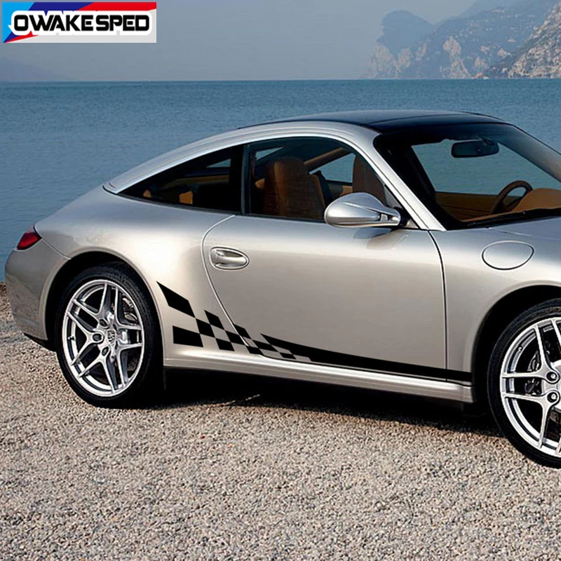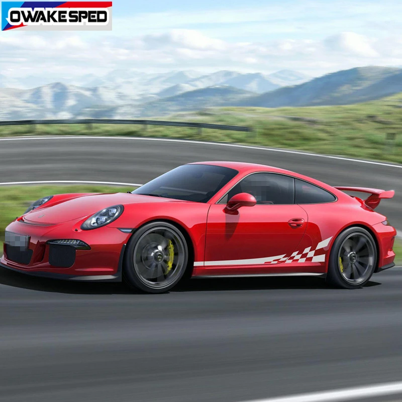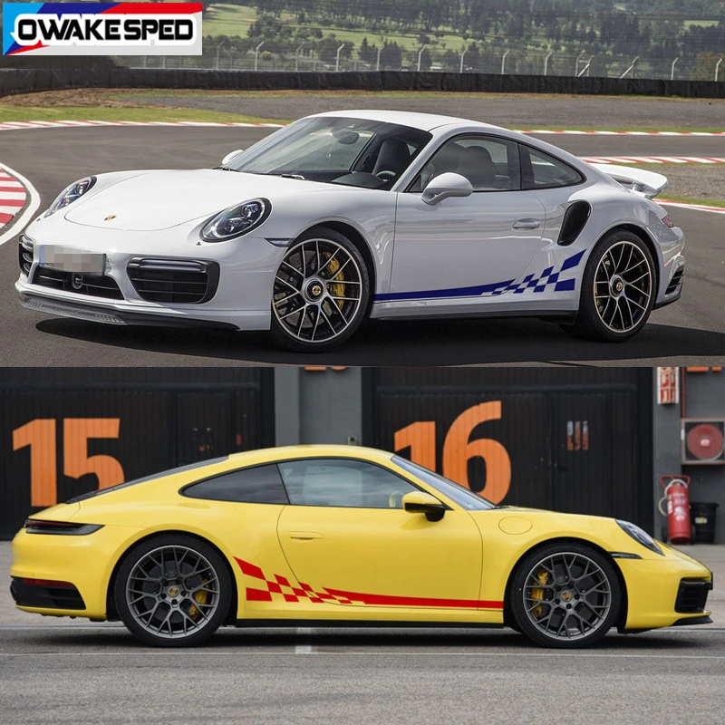 Гоночный флаг, графический стикер, автомобильная дверь, боковая юбка, виниловые наклейки для Porsche 911 997, внешние аксессуары, Спортивная наклейка в полоску