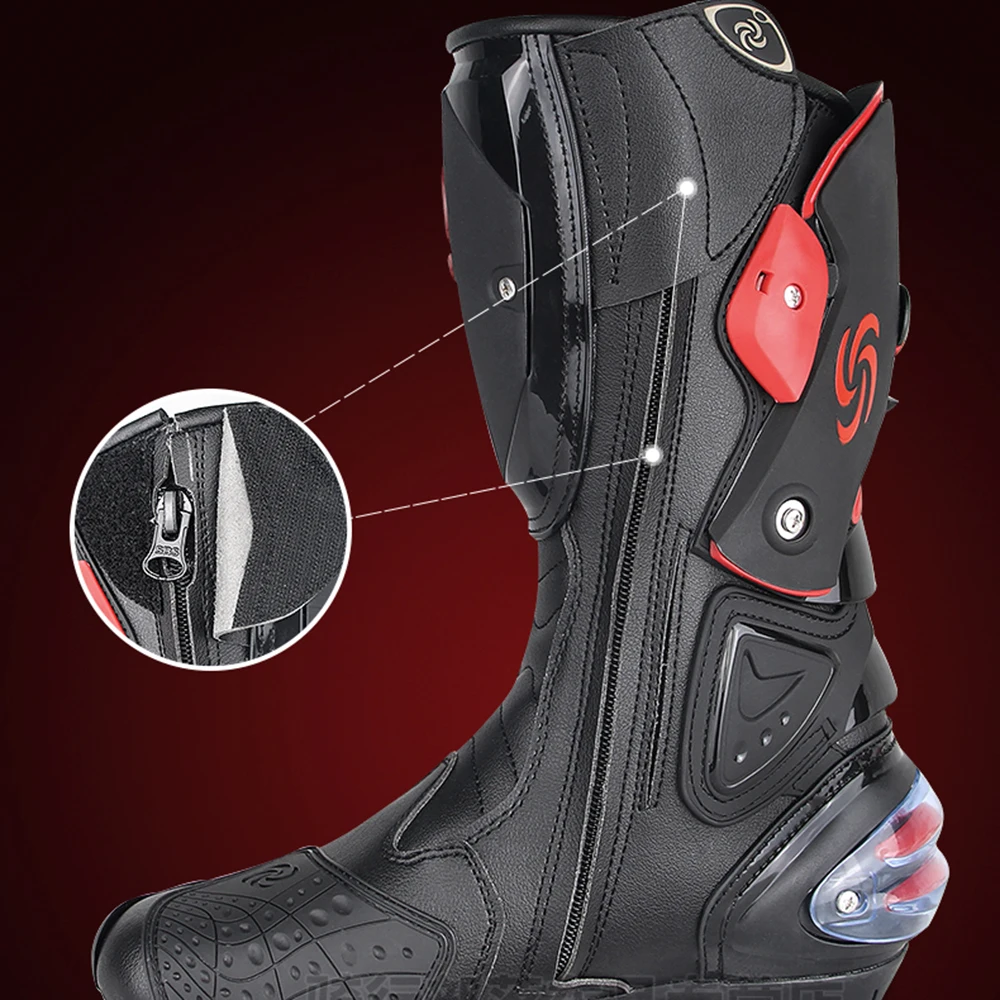 Это набор гоночных сапог, в качестве одной из функций транспортного средства. Высококачественная резиновая подошва, специальные материалы для защиты от столкновений, эффективная защита езды.2,0 износостойкая супер-волоконная кожа, твердость и твердость-двухслойная кожаИзносостойкая противоскользящая конструкция, специальные материалы, эффективная защита, Новый эластичный кондиционер,Легко носить, дизайн вентиляции гарантирует комфорт для верховой езды, волшебная регулировка лодыжки, светоотражающий износ ремня, с высокой светоотражательной текстурой, легко ездить ночью в дождливый деньФункция: водонепроницаемый, анти-столкновения, эластичный кондиционер, износостойкий.Сезон: весна, лето, осень, зима