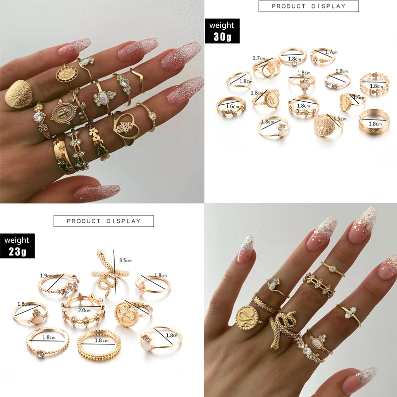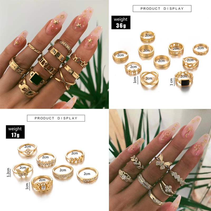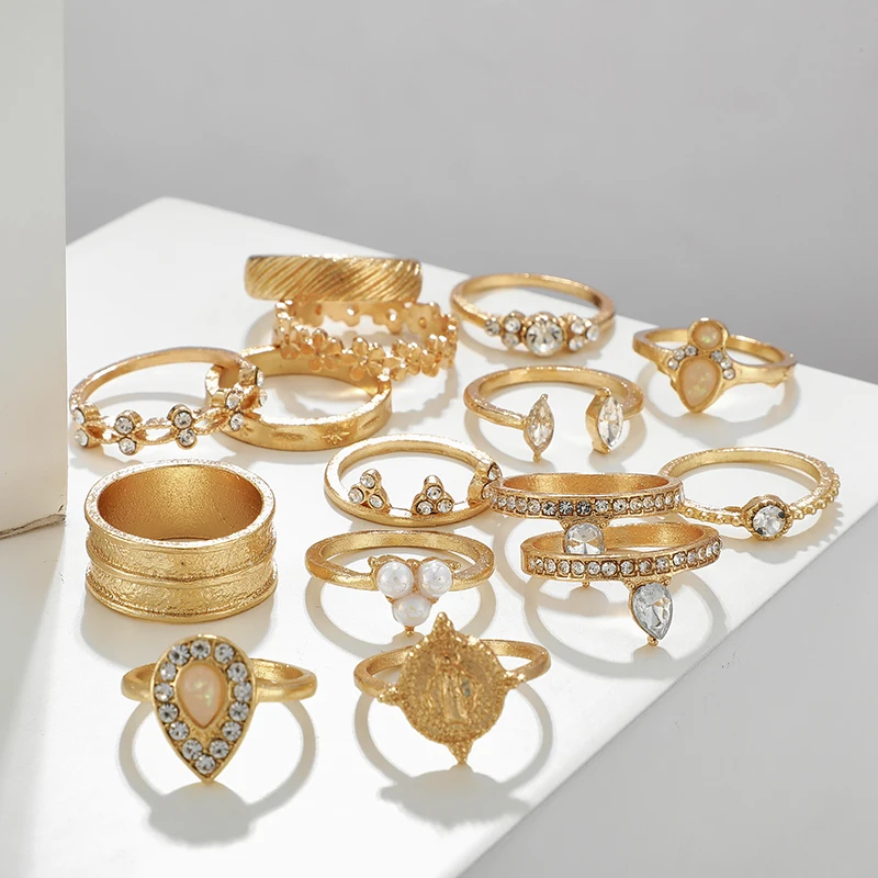Набор колец с геометрическим узором для женщин, набор из 16 колец золотого цвета в богемном стиле с цветами Богородицы и сердцем, с кристаллами, комплект колец на фалангу
