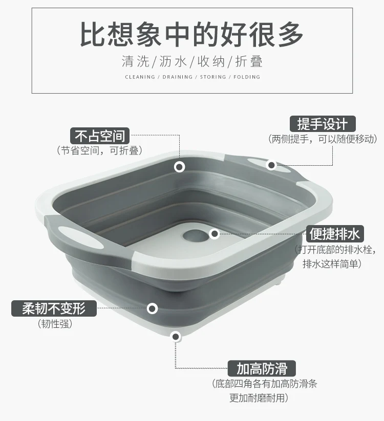 Силиконовая ванна для посуды, складная, со сливной пробкой, ручки д...