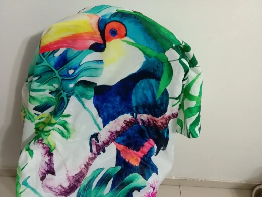 рисунок милый весёлый, качество печати отличное, ткань скорее синтетика, плотная но тонковата, как постельное бельё лучше бы хлопок, как декоративная наволочка на лето пойдёт. продавец отправил в предпоследний день, но не обманул, поэтому звёзды не снимаю
