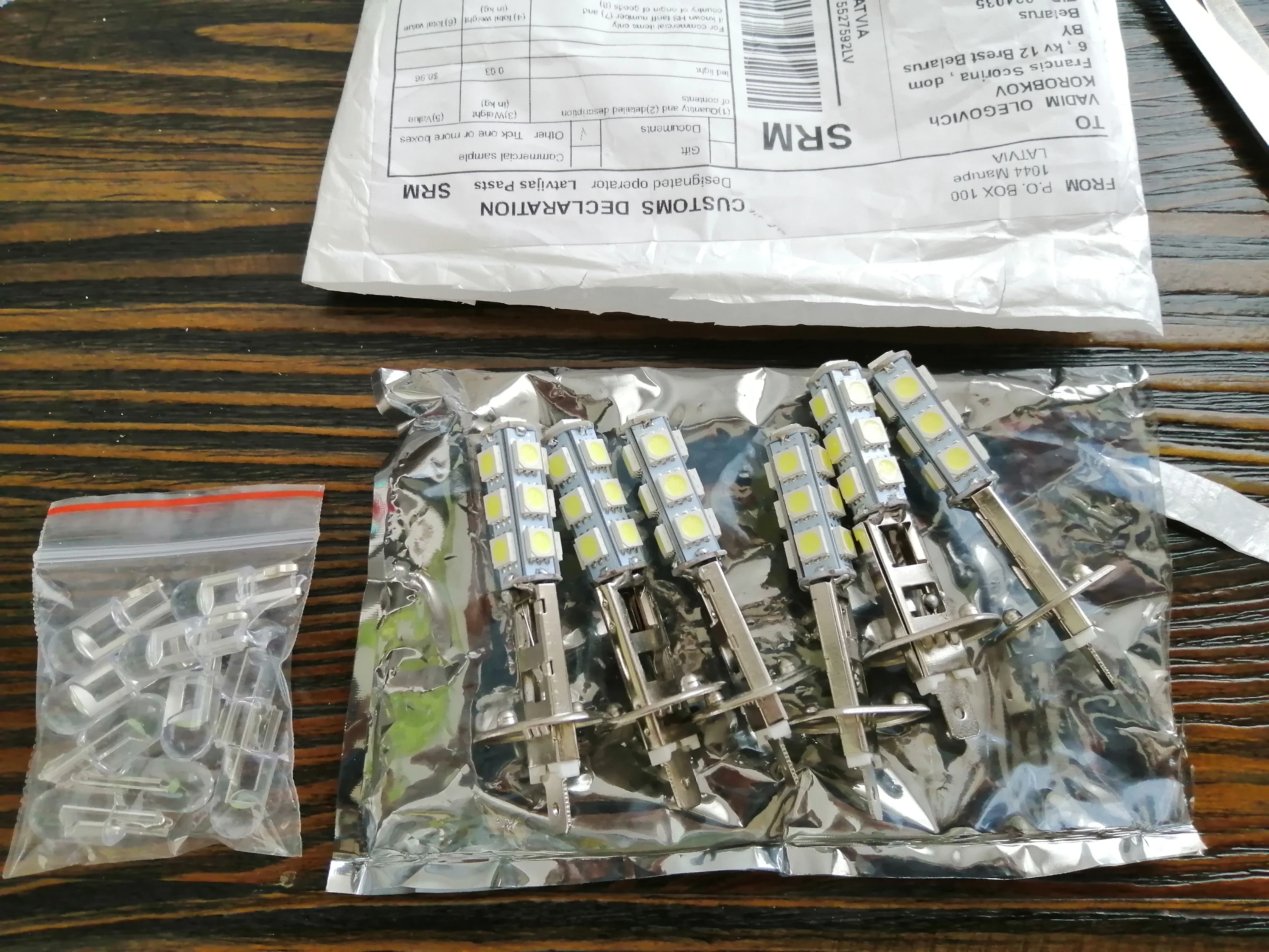 Посылка пришла за 14 дней, совместно с другими заказами в одном пакете с трек номером RU и отслеживалась на всем пути следования. Лампы упакованы хорошо, в пупырчатый пакет. Свет от ламп очень слабый, подходят только для ДХО, но не для основного света.