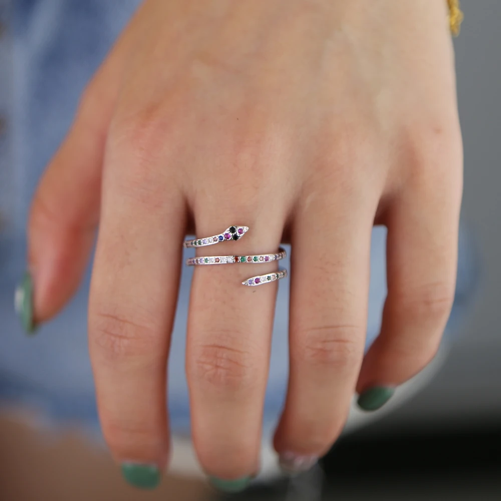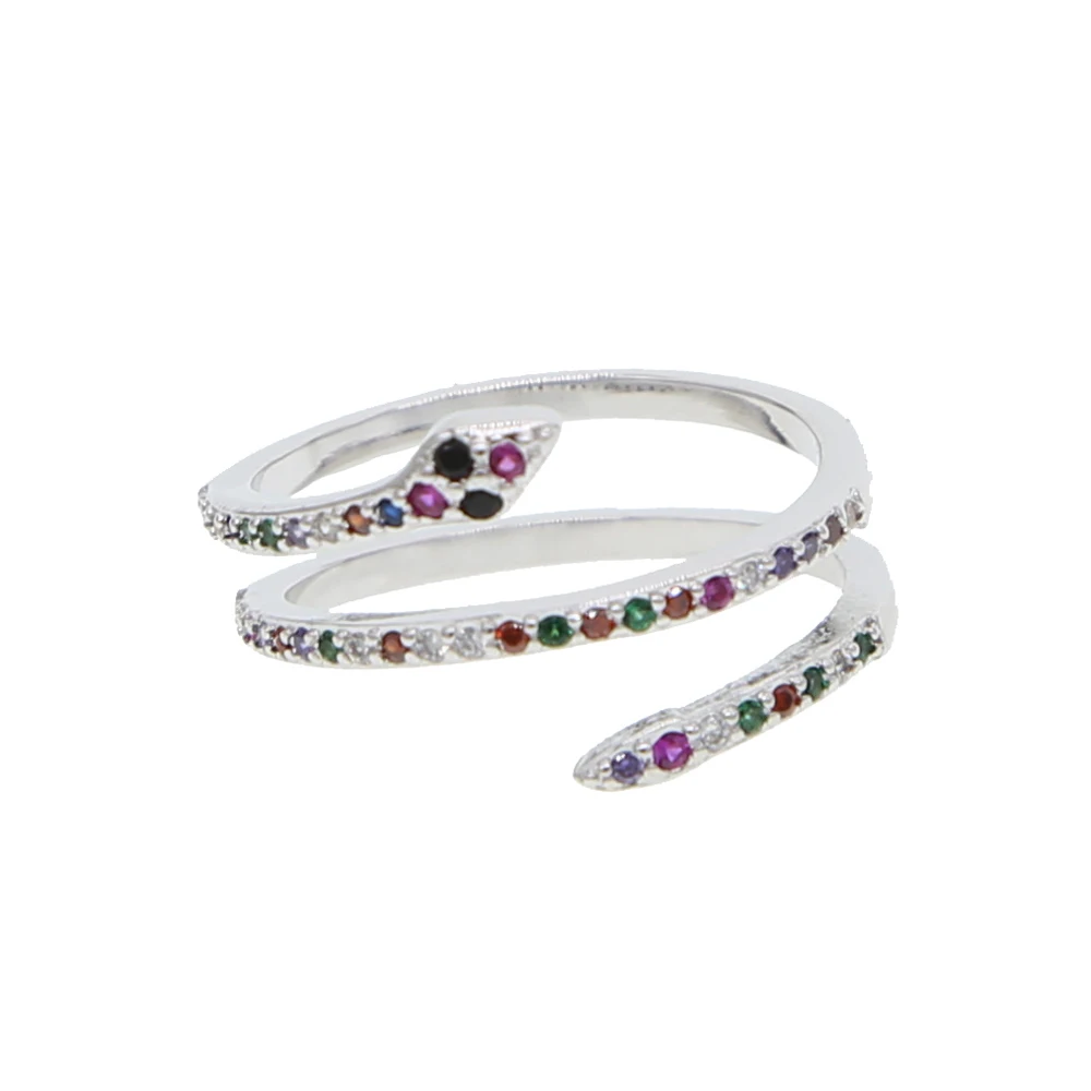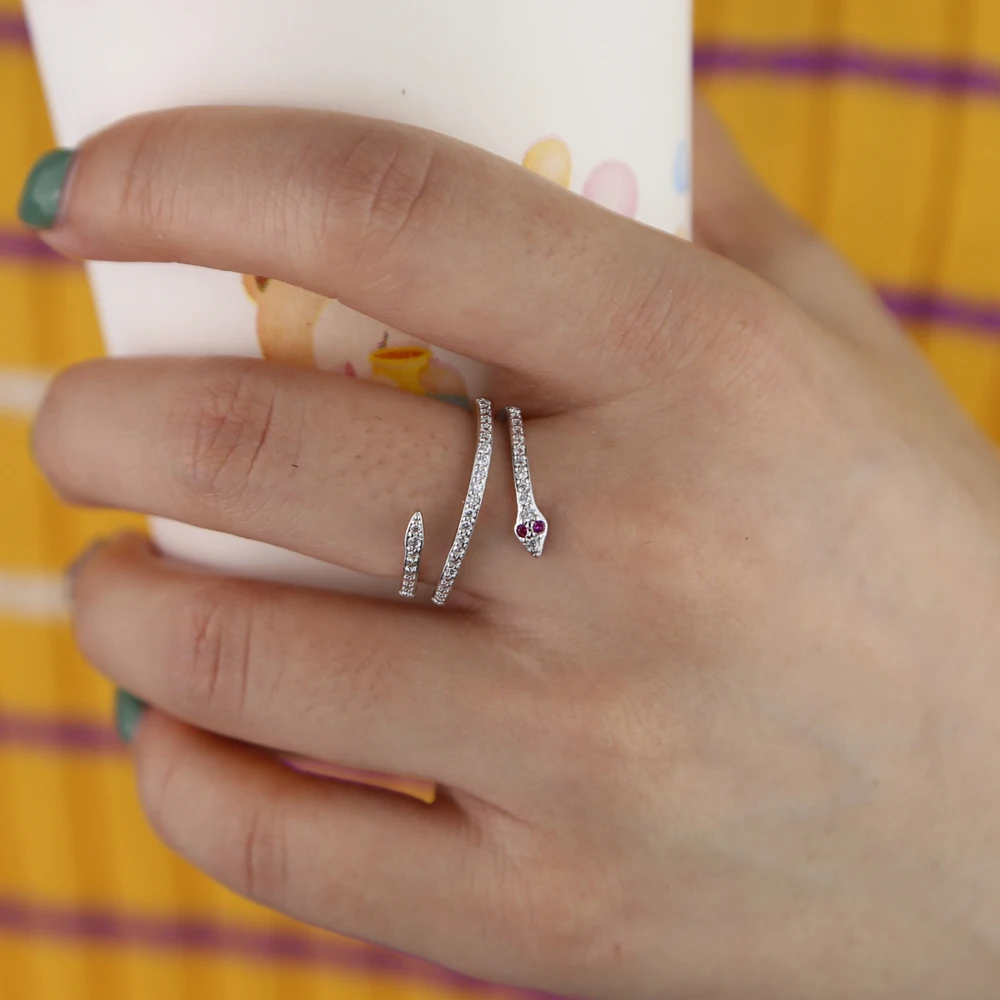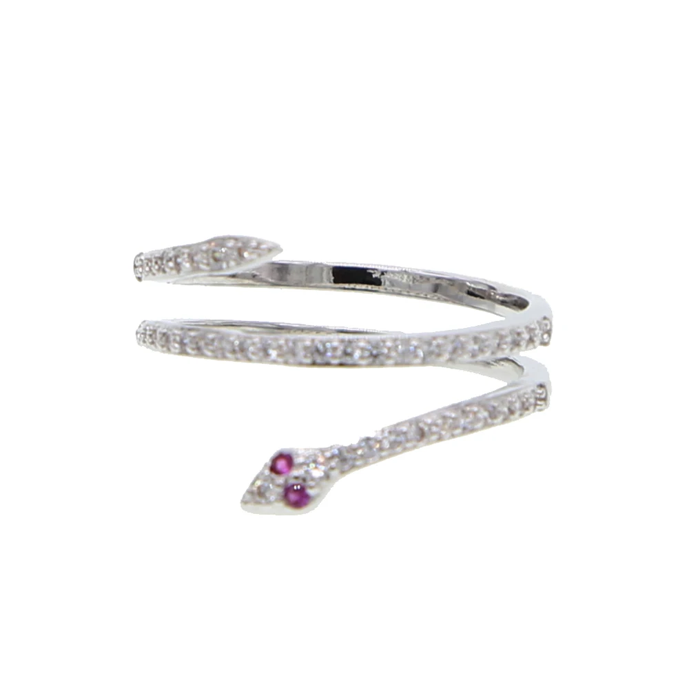 Женское кольцо в виде змеи с фианитом, серебряного цвета