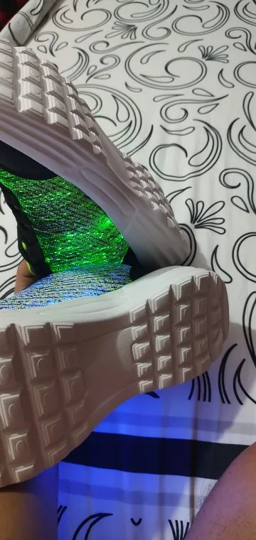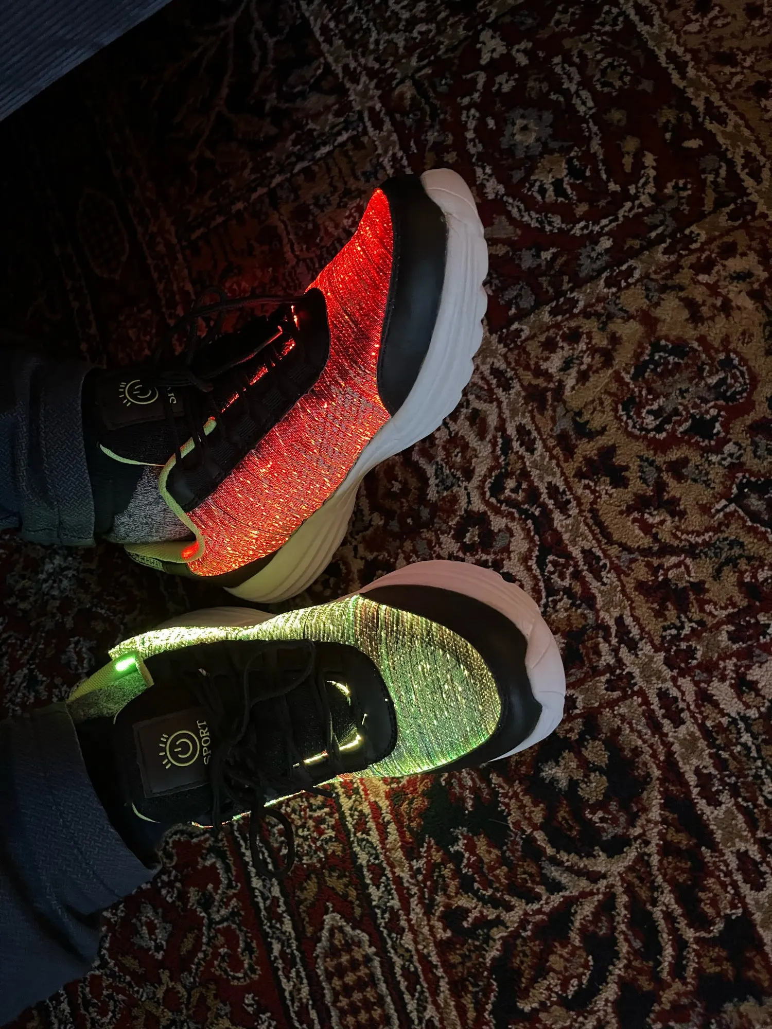 Они прибыли хорошо упакованными без повреждений, они прибыли быстро, моя дочь любила их, и они подходят ей хорошо, они выглядят великолепно в темноте, продавец соответствует, и я рекомендую это!