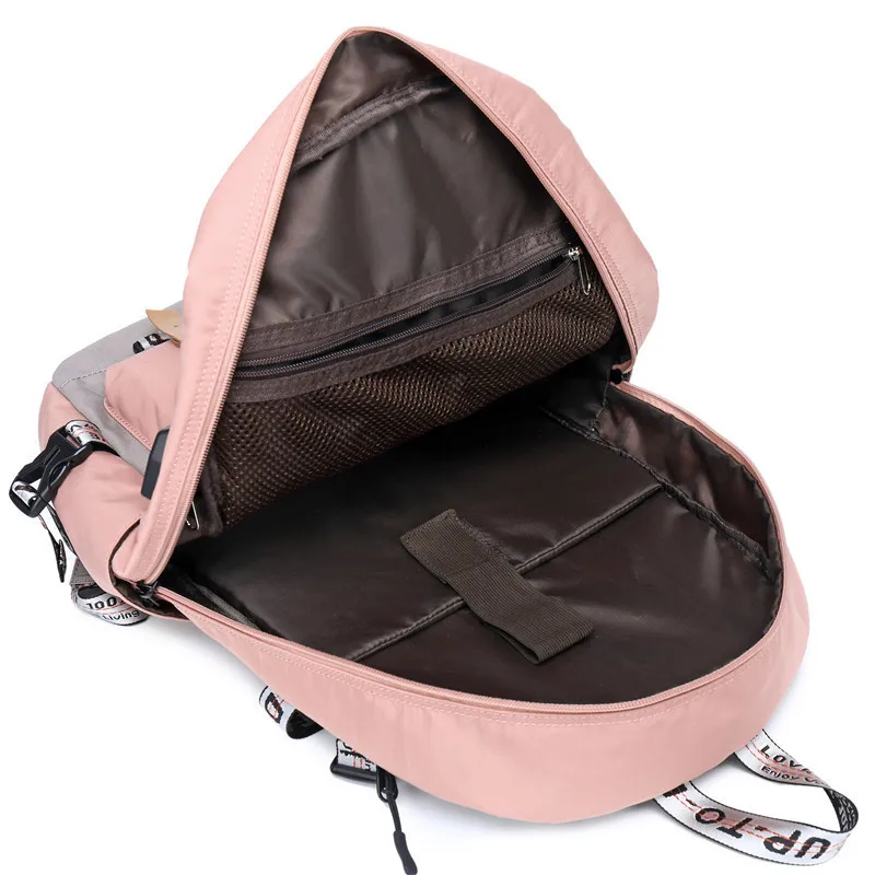 Женский рюкзак для ноутбука с USB-зарядкой и надписью