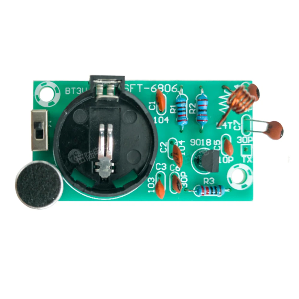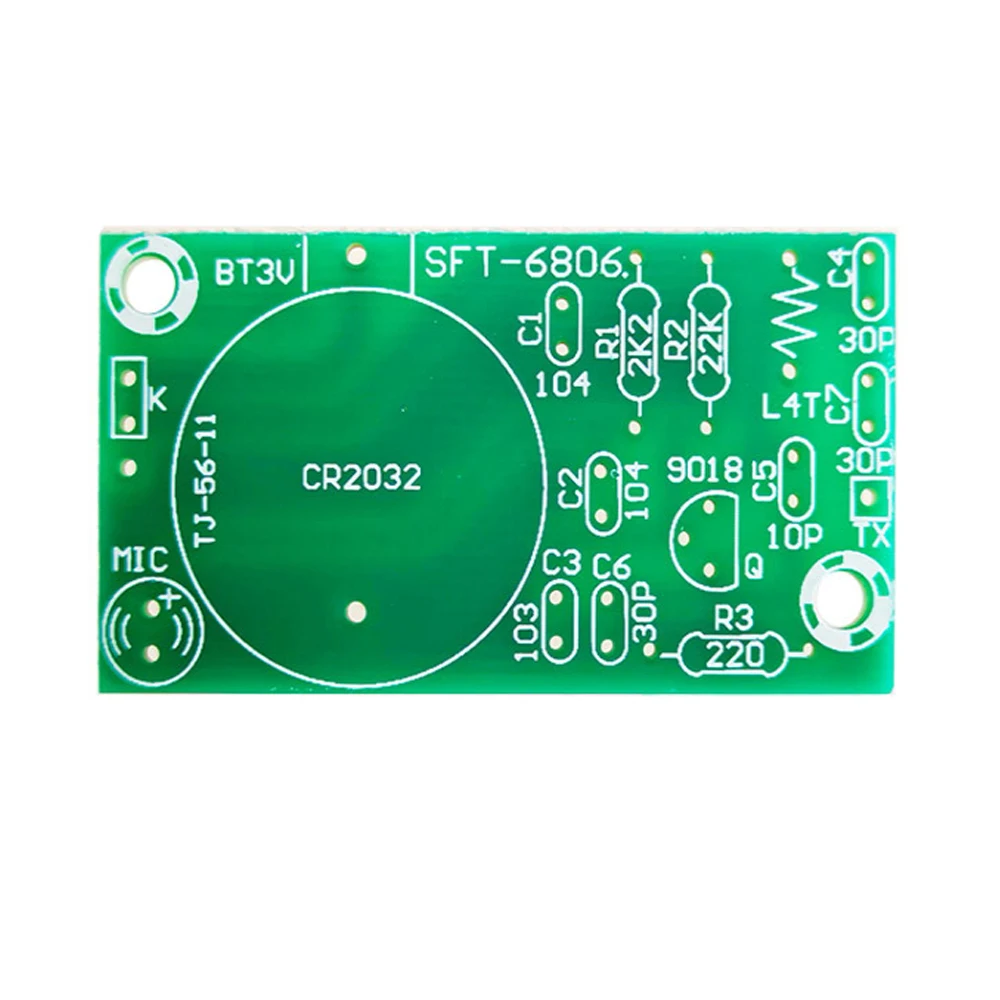 1. Диапазон частот: 88 МГц-108 МГц2. Рабочее напряжение: 3 в (Используйте аккумулятор кнопки CR2032)3. Материал печатной платы: FR-4 стекловолокна4. Спецификация PCB: 48*26 мм толщина 1,6 мм