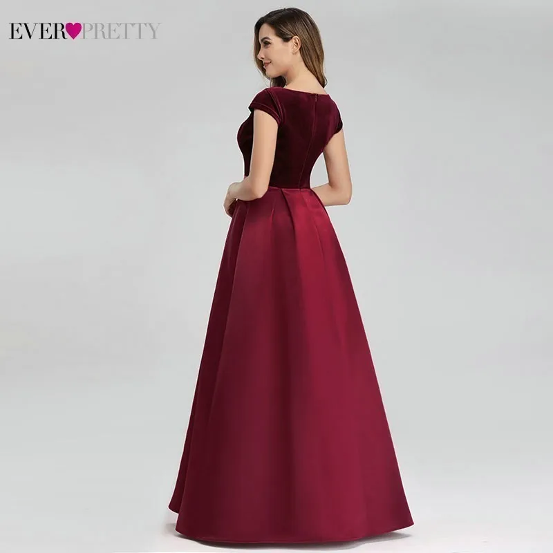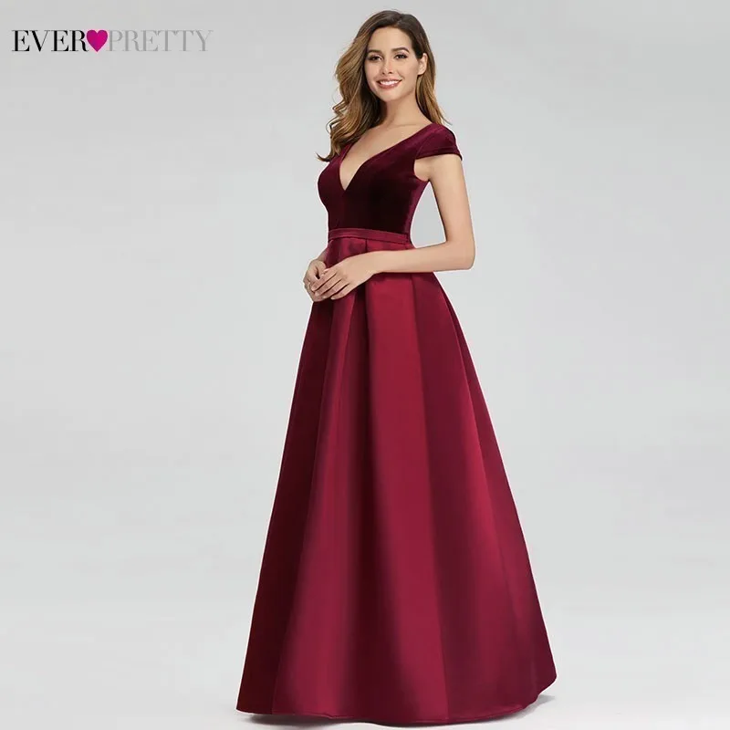 Женское длинное платье для выпускного Ever Pretty, бордовое велюровое платье-трапеция с V-образным вырезом, элегантное формальное платье для вечеринки, 2020