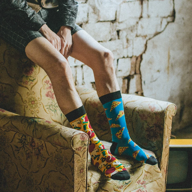 Носки мужские длинные в стиле Харадзюку, забавные с принтом животных, Акула, Такса, птица, Рино-Волк, мультяшное платье, вечерние уличные