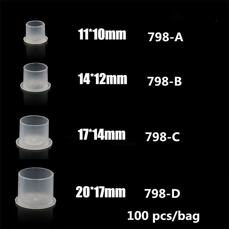 100 шт. одноразовые устойчивые пластиковые стаканчики для чернил для татуировок Microblading 4 размера Перманентный макияж Пигмент прозрачный держатель контейнер с крышкой