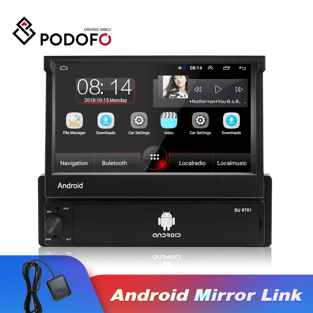 Автомагнитола Podofo, 1 Din, Android 8,1, выдвижной автомобильный радиоприемник 7 дюймов, GPS-навигация, автомобильный мультимедийный плеер, Wi-Fi, MP5-плеер с поддержкой камеры