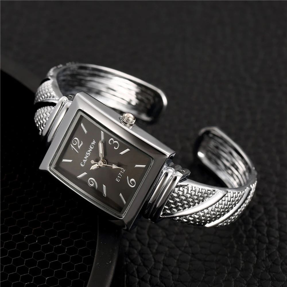 Женские часы-браслет, элегантные часы из нержавеющей стали с квадратным циферблатом