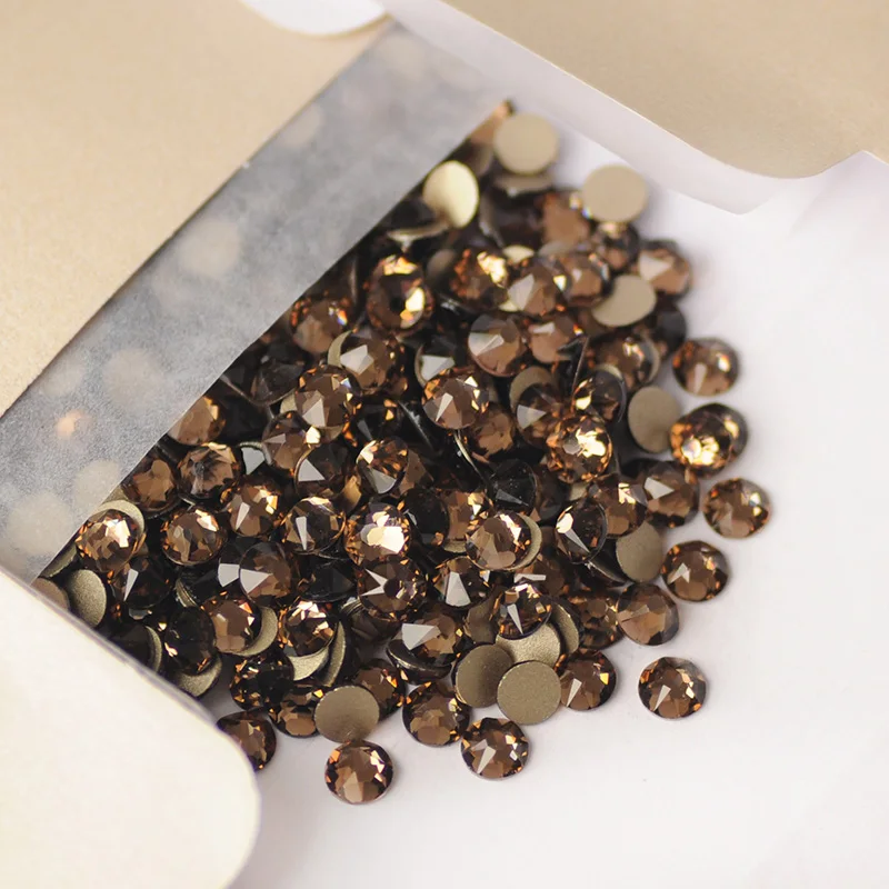 Стразы декоративные из дымчатого топаза, со стеклянными камнями, бе...