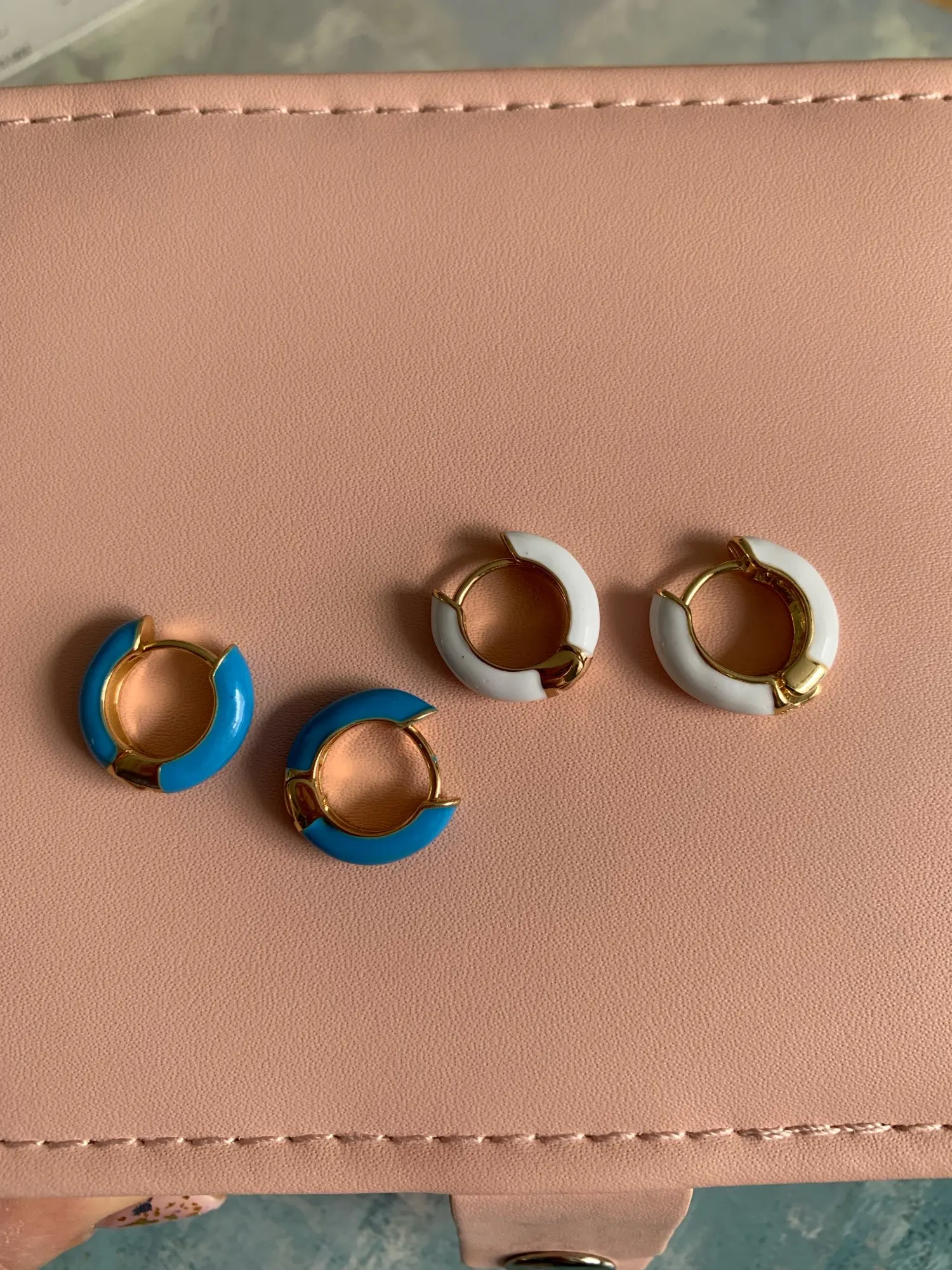 Заказала белые. Серьги хлипкие, обе половинки серьги болтаются. Металл мягкий, застежка плохо закрывается или совсем не закрывается, штырёк гнётся. На эмали мелкие пузырьки (на фото не видно). Посылка шла 3 недели в Нск. С продавцом не общалась.
