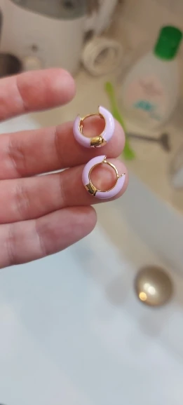 Серьги очень классные. Цвет соответствует заявленному, Лаванда. Жаль, одна серьга попалась с дефектом. Швенза заштифтована под наклоном, поэтому серьга смотрится криво. Отнесла ювелиру, он починил. Вторая серьга идеальна. Застежка крепкая относительно похожих серёжек. Диаметр почти 15мм, ширина около 5мм. Звезду за дефект не стала убирать, так как продавец сразу вышел на связь и показал как подогнуть серьгу, чтоб хорошо держал замочек. Рекомендую продавца.