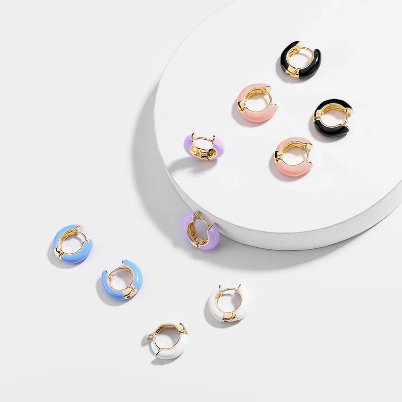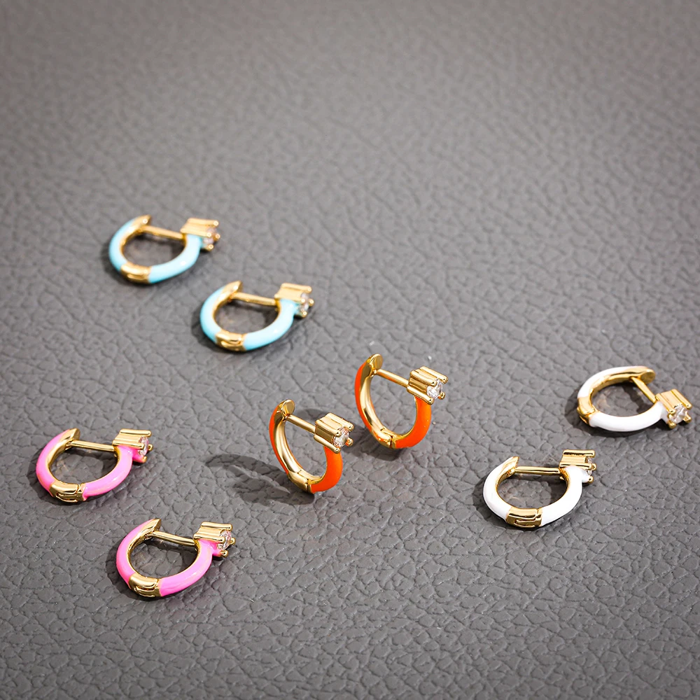Серьги-каффы женские, разноцветные, с геометрическим узором, с эмалью, маленькая серьга-кольцо