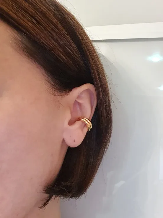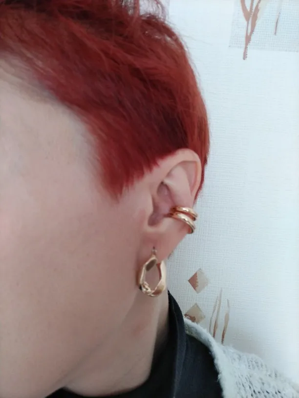 Быстрая доставка (14 дней до СПб), каффы плотно сидят на ухе, правда тот что меньше вообще не налез. На меньшее ухо наверно налезет, отдам младшей сестре
