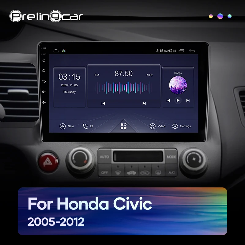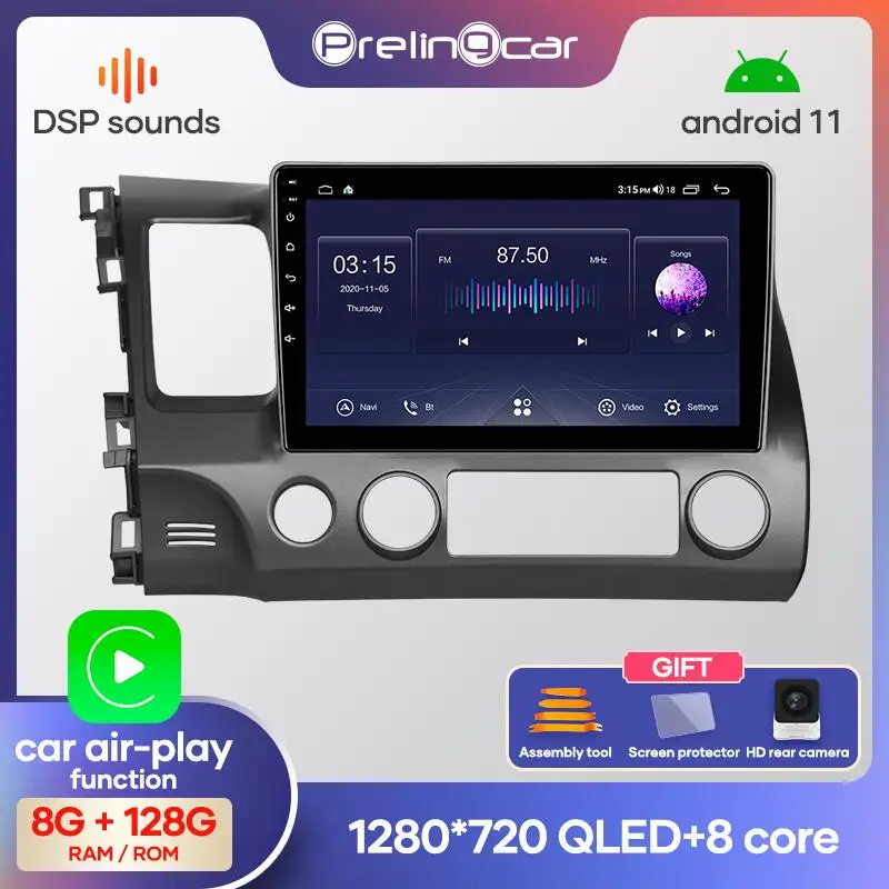 Prelingcar Android10.0 без DVD 2 Din Автомобильный Радио Мультимедиа Видео плеер навигация GPS для Honda Civic 8 2005-2011 Восьмиядерный 4 + 64G