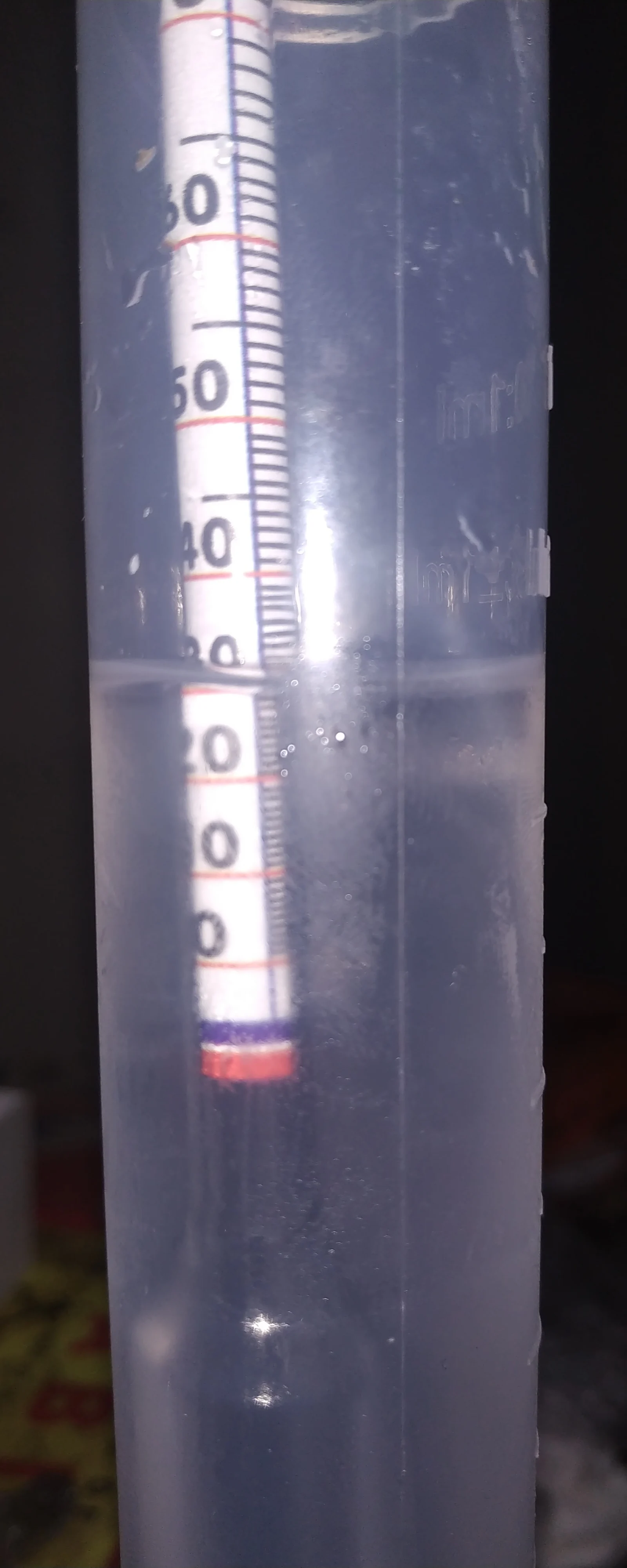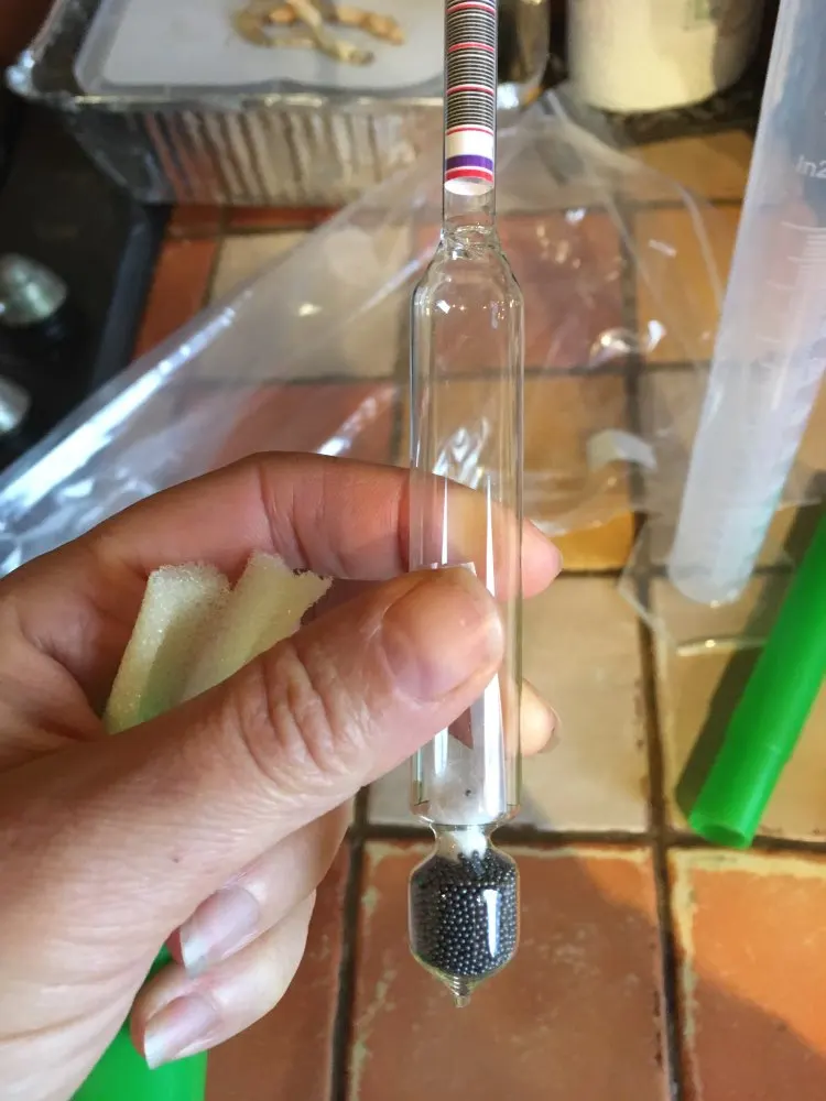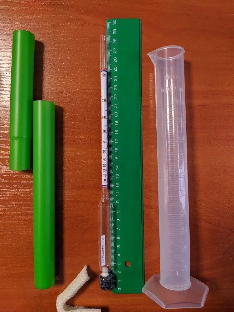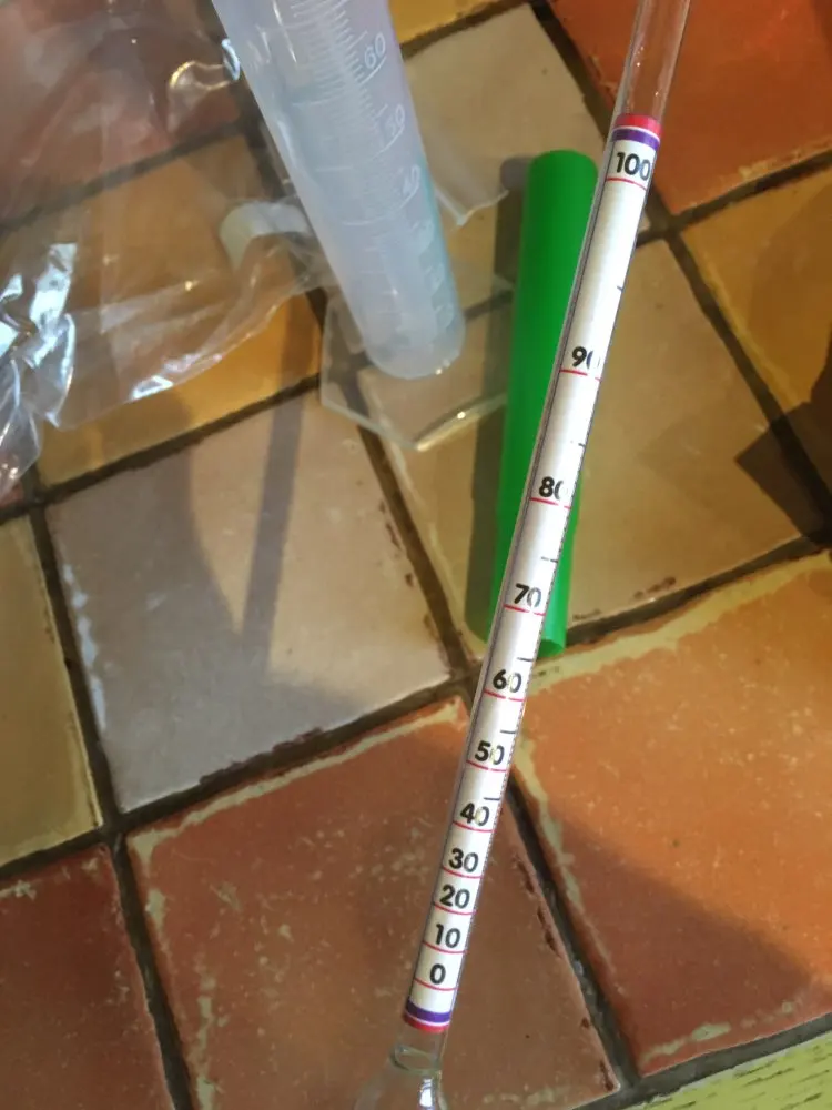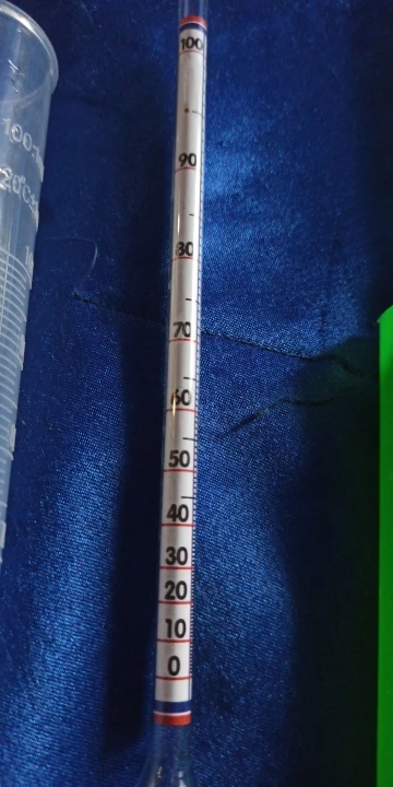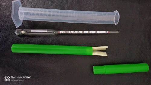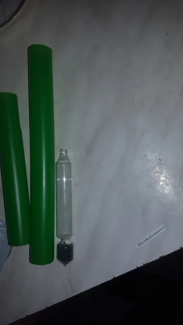 Спиртометр пришёл целый и невридимый. Не маленький, отлично измерять градусы с единичными показаниями, где чётко одно деление, значит один градус, по сравнению с магазинными где не разберешь, деление это 2 или 2,5 градуса. Колба тоже отличная.